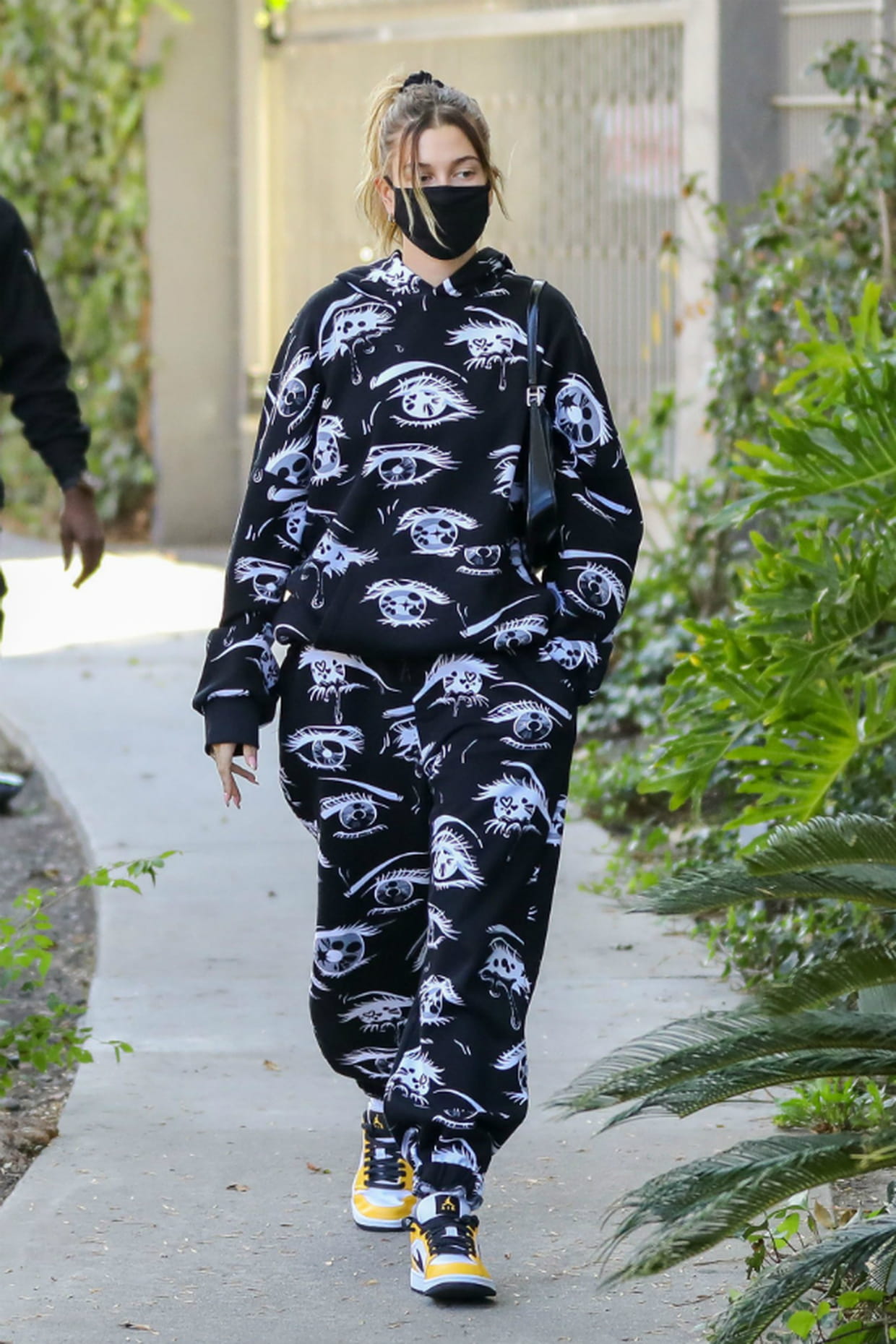 Hailey Baldwin en total look imprimé à Hollywood le 26 novembre 2020