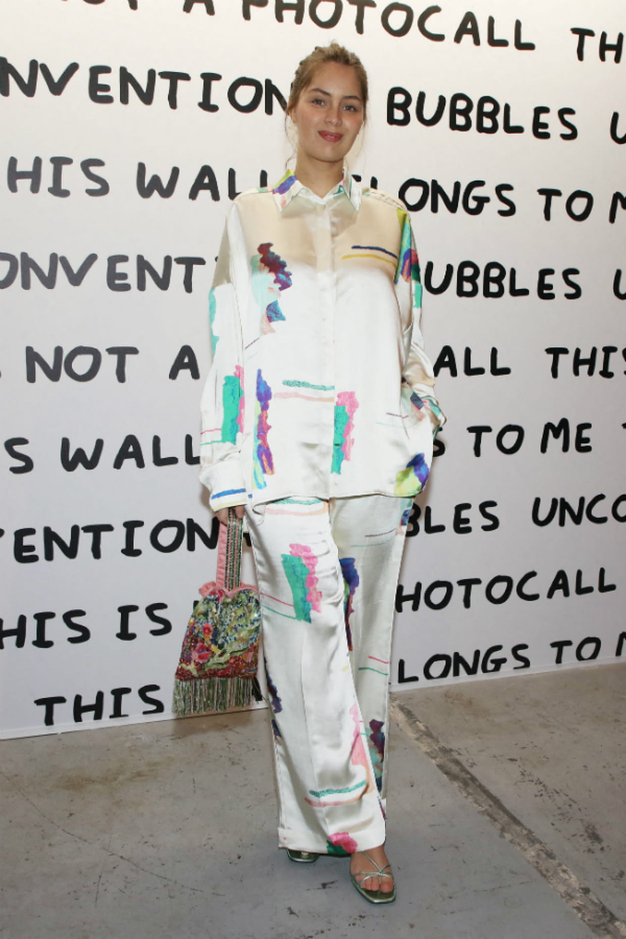 Marie-Ange Casta en ensemble satiné à l'événement Ruinart à Paris le 5 mars 2020