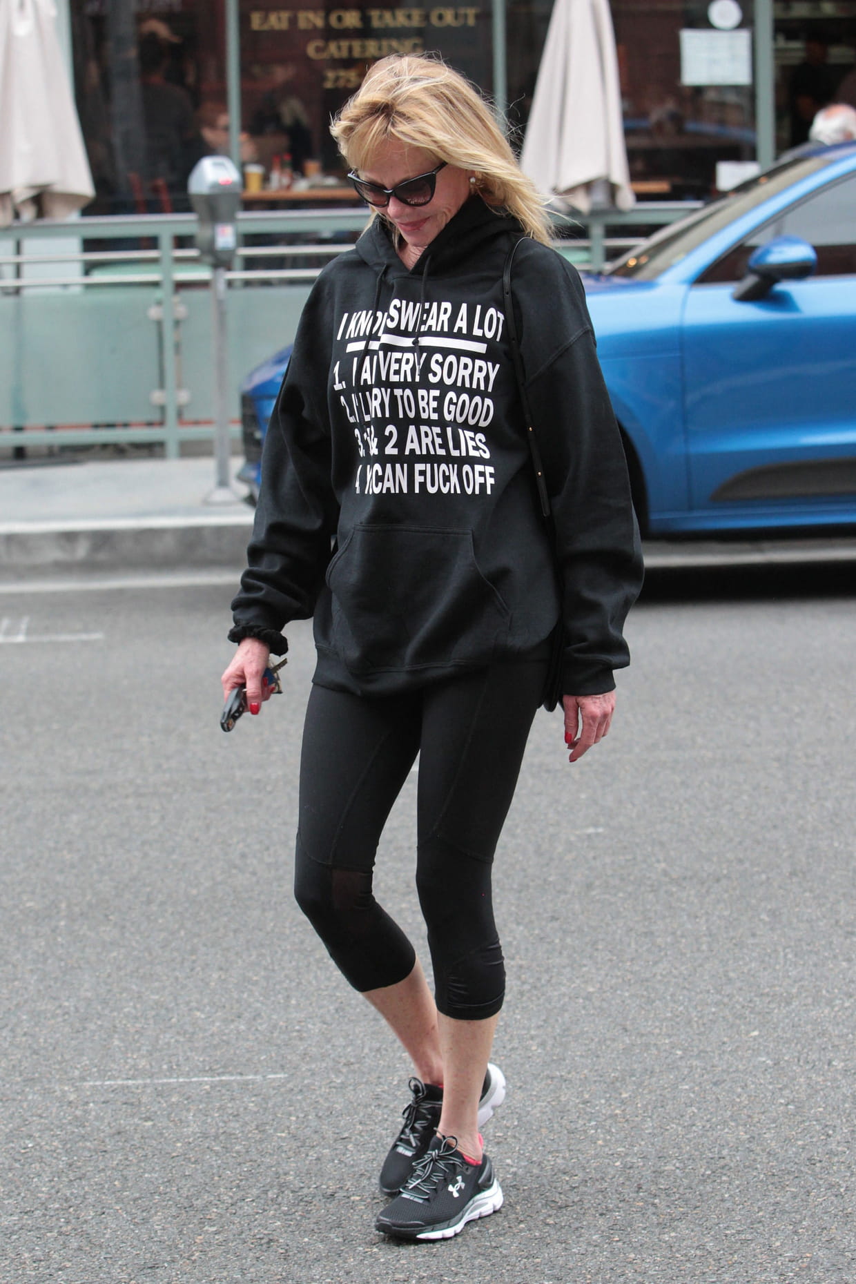 Melanie Griffith avec un hoodie à message à Los Angeles le 9 mai 2017.