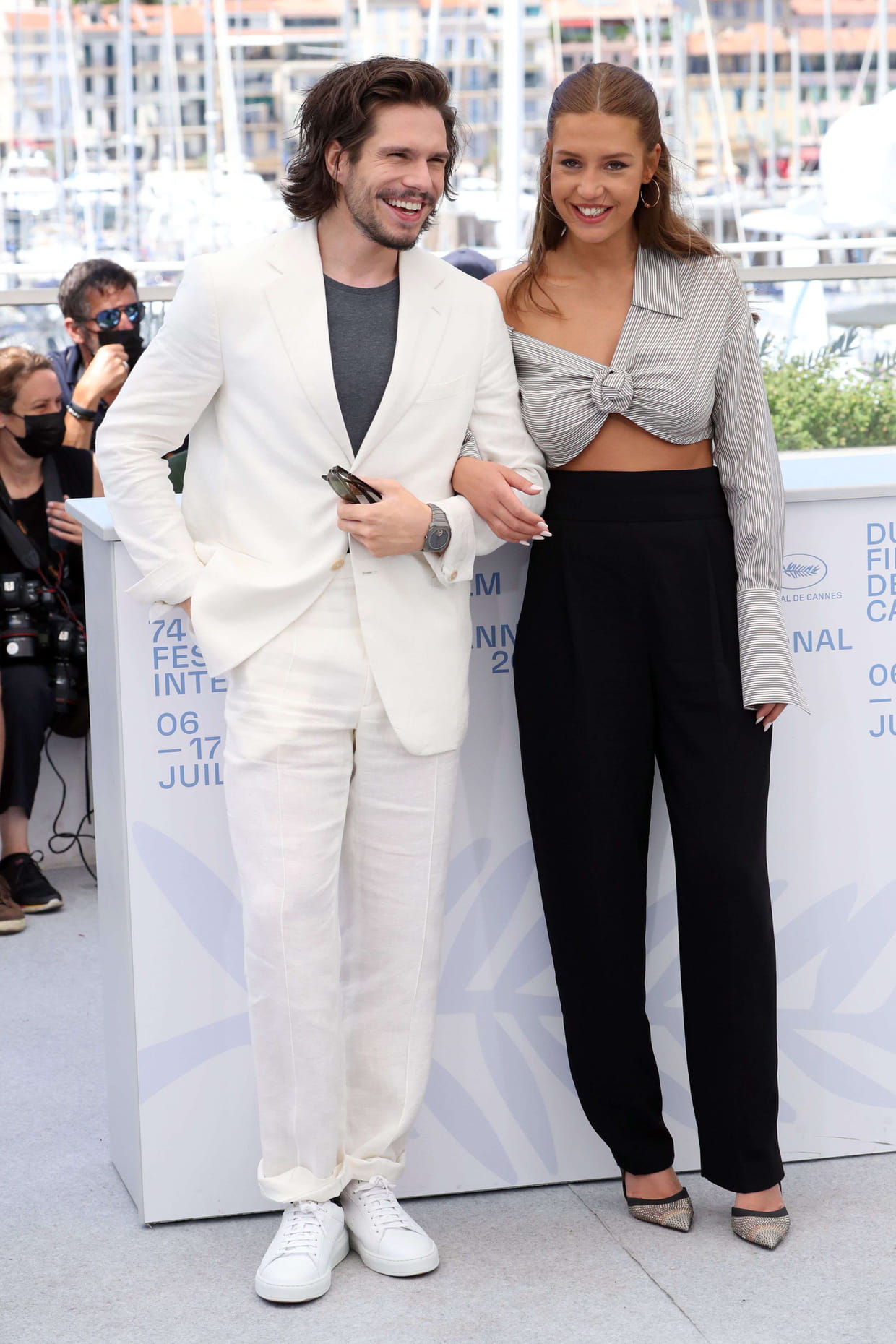 Adèle Exarchopoulos en Fendi  avec François Civil au photocall de BAC Nord au festival de Cannes le 13 juillet 2021.