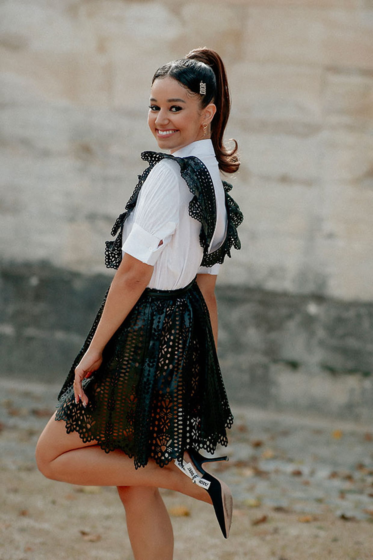 Lena Mahfouf au défilé Dior pendant la Fashion week printemps-été 2022 à Paris le 28 septembre 2021.