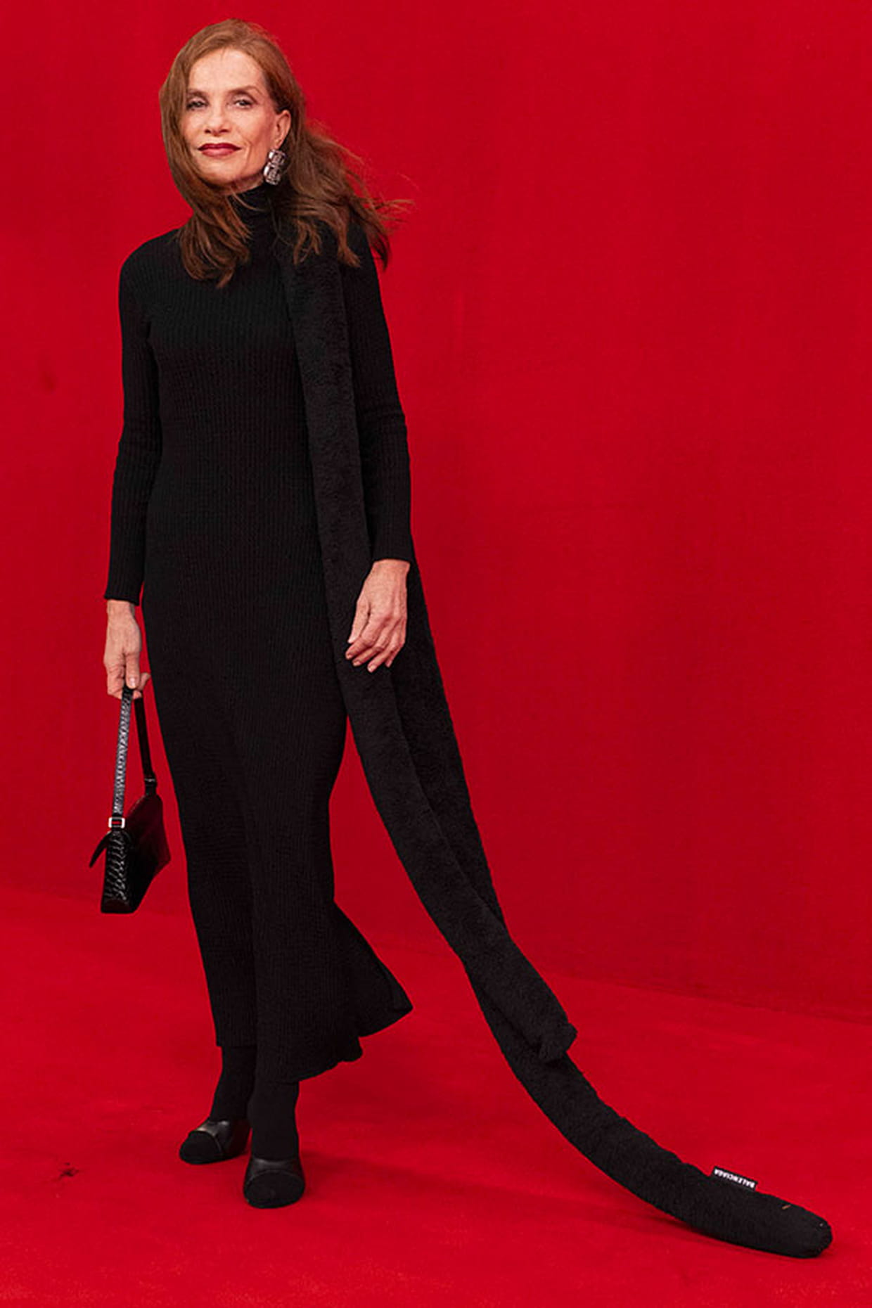 Isabelle Huppert au défilé Balenciaga pendant la Fashion week printemps-été 2022 à Paris le 2 octobre 2021.