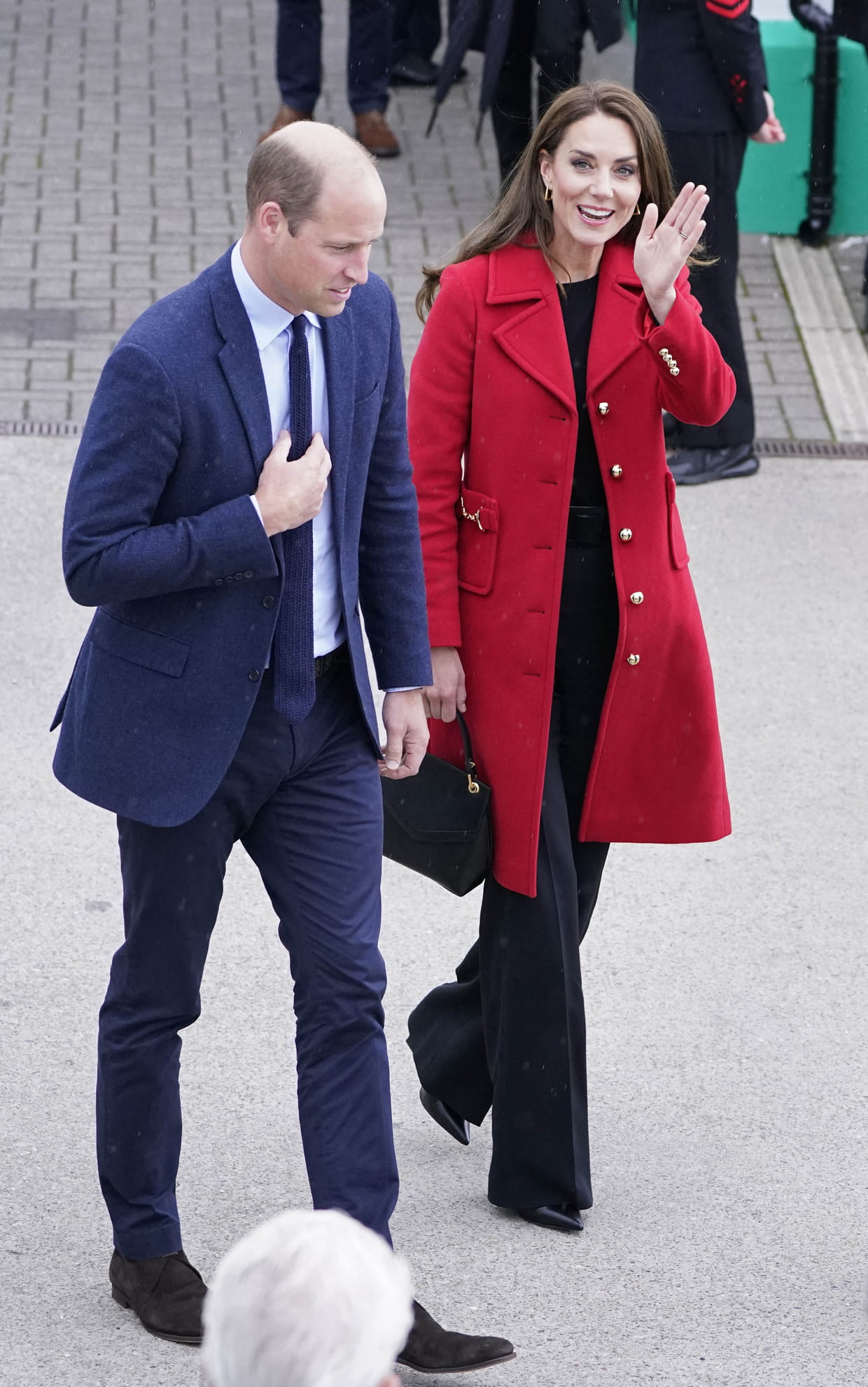 Kate Middleton en manteau rouge L.K. Bennett avec le prince William à Holyhead le 27 septembre 2022.