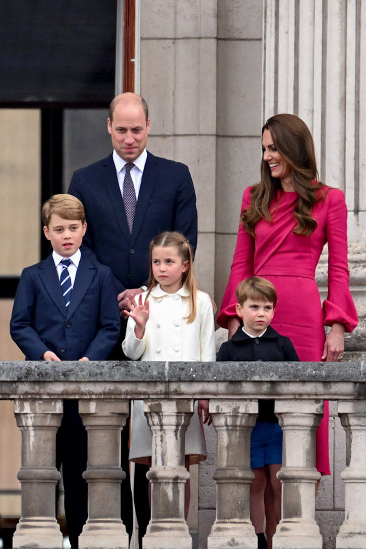 Kate Middleton en robe rose à manches bouffantes lors du jubilé de platine de la reine Elizabeth II à Londres le 5 juin 2022.