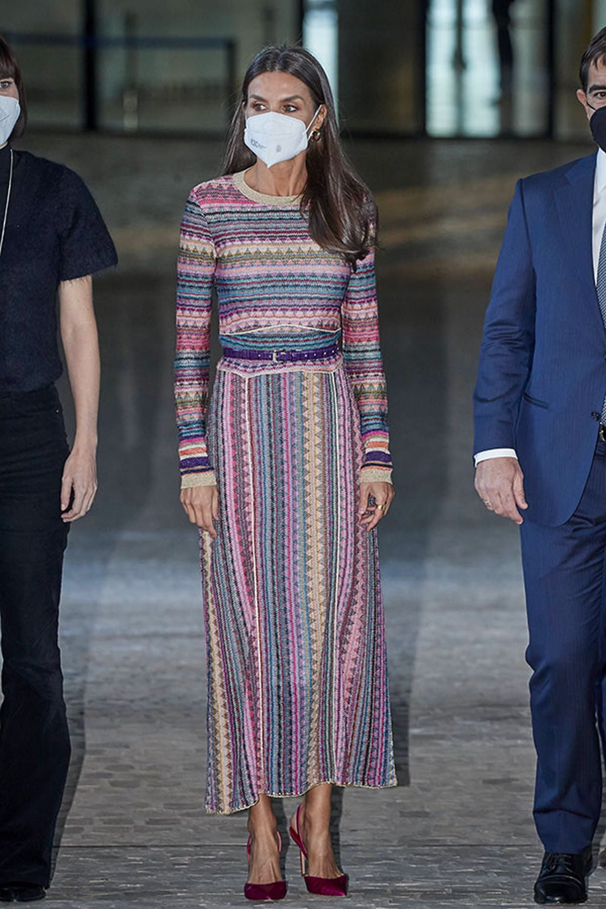 Letizia d'Espagne en robe longue à motifs