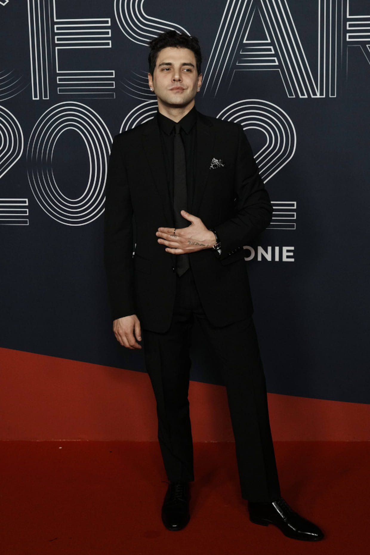 Xavier Dolan en look monochrome noir sur le tapis rouge de la 47ème cérémonie des César à l'Olympia de Paris le 25 février 2022.