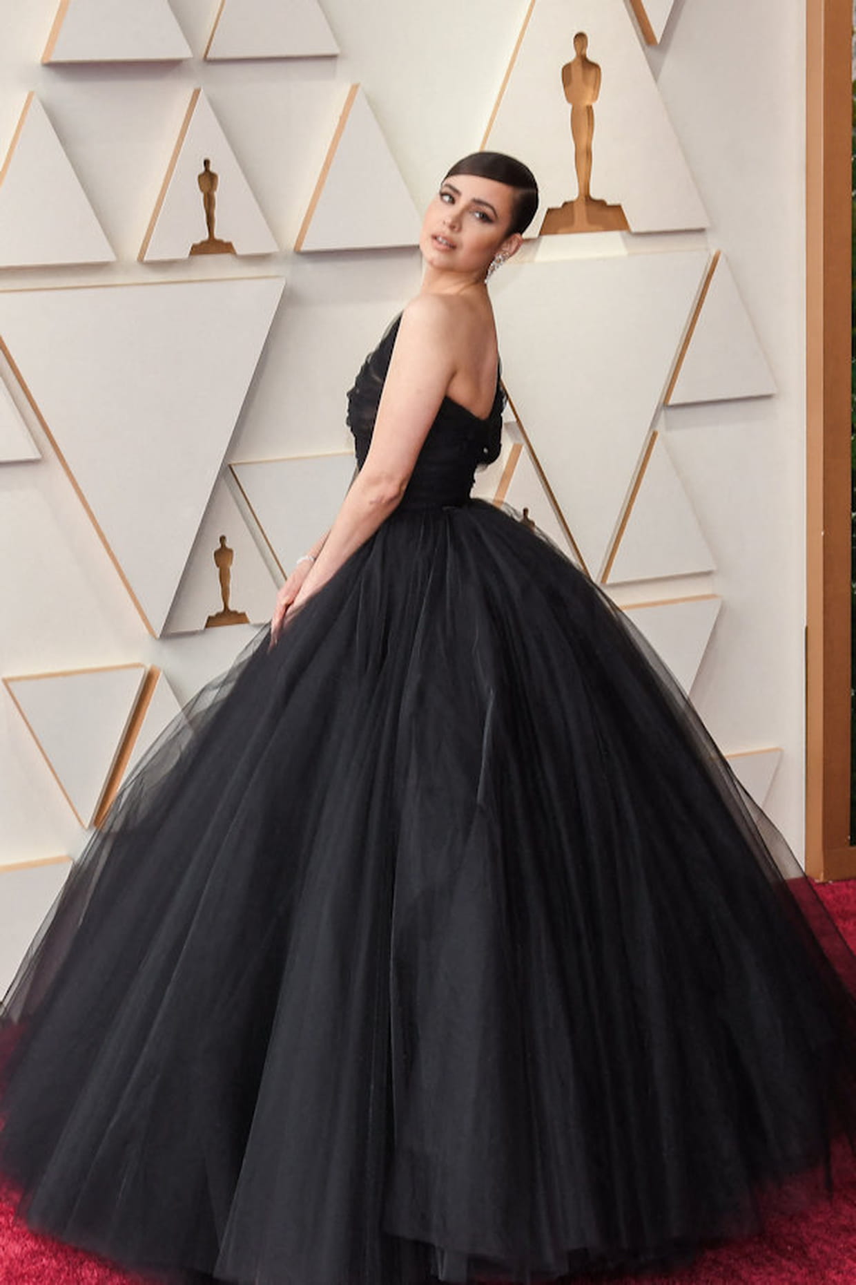 Sofia Carson en robe noire Giambattista Valli à la 94ème cérémonie des Oscars le dimanche 27 mars 2022 à Los Angeles.