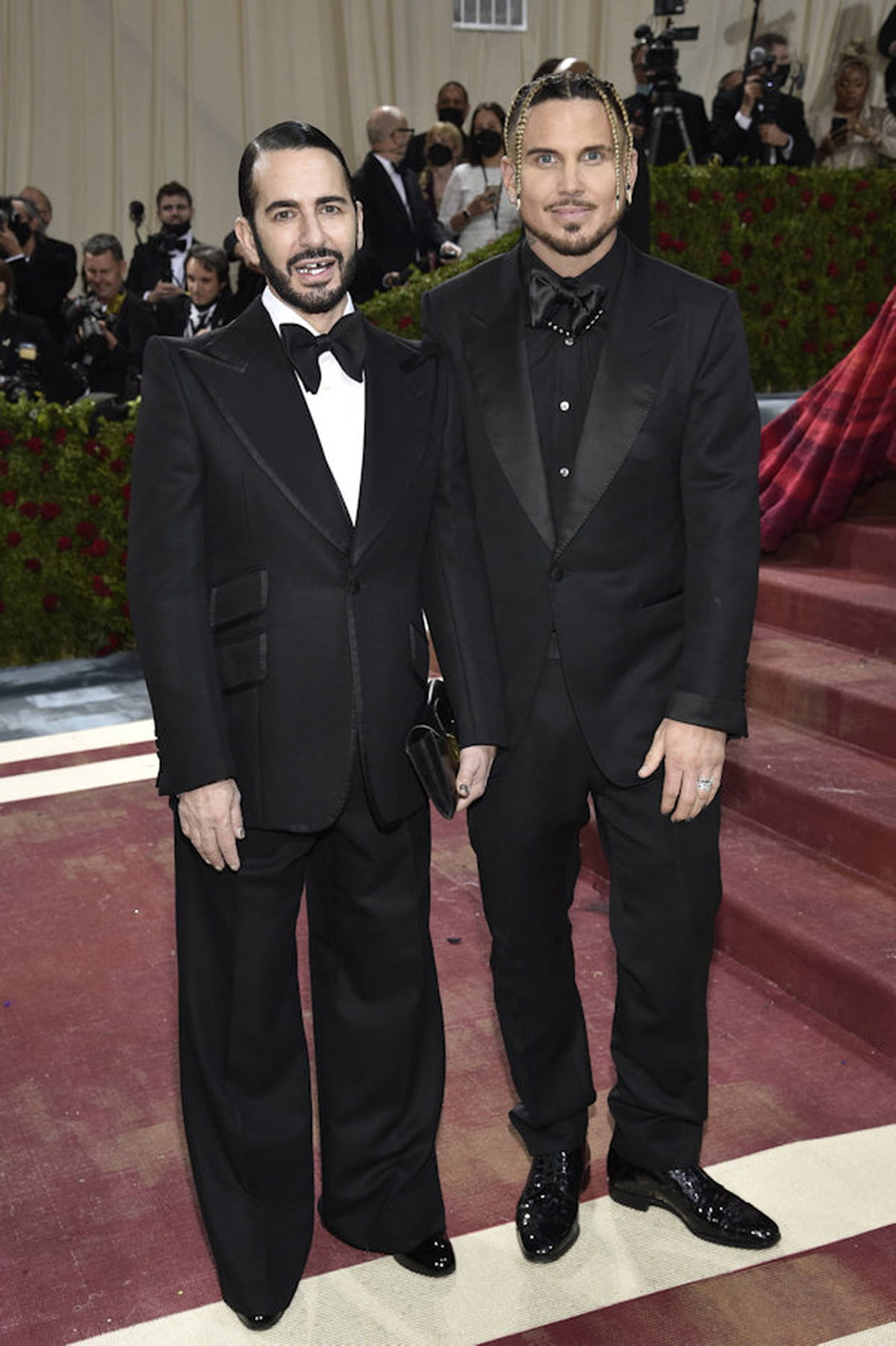 Marc Jacobs et Char Defrancesco en costumes noirs au Met Gala à New York le 2 mai 2022.