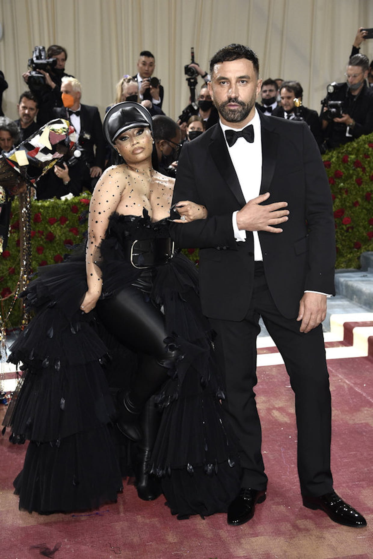 Nicki Minaj en robe noire et Riccardo Tisci en costume Burberry au Met Gala à New York le 2 mai 2022.