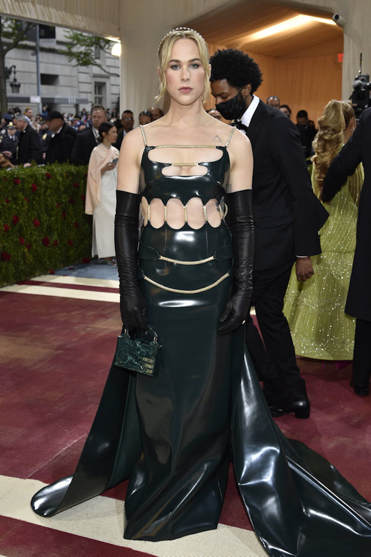 Tommy Dorfman en robe vert bouteille Christophe Kane au Met Gala à New York le 2 mai 2022.