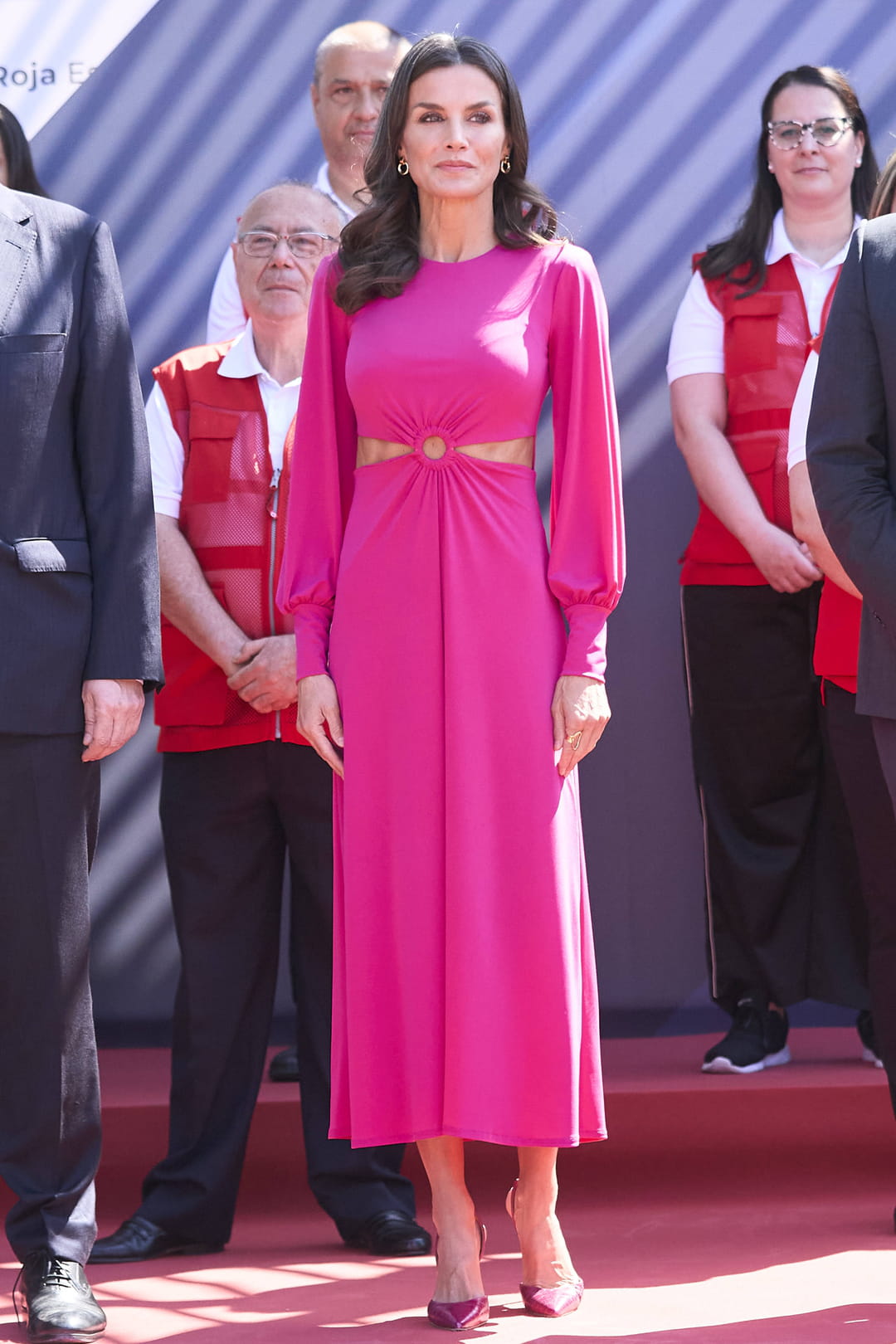 Sa tenue ? Une robe fuchsia aux détails cut out sur le ventre, le gimmick mode en vogue cette saison. Cette maxi dress fluide aux manches resserrées était signée de la marque ibérique Cayro. Une pièce vendue 61,90 euros, que certains observateurs malintentionnés se sont empressés de juger "trop sexy" pour un événement officiel. Pour finaliser son look monochrome, Letizia Ortiz avait opté pour un sac à main et une paire d'escarpins en cuir embossé crocodile, tous deux créés par sa griffe préférée, Carolina Herrera. Une silhouette irréprochable !