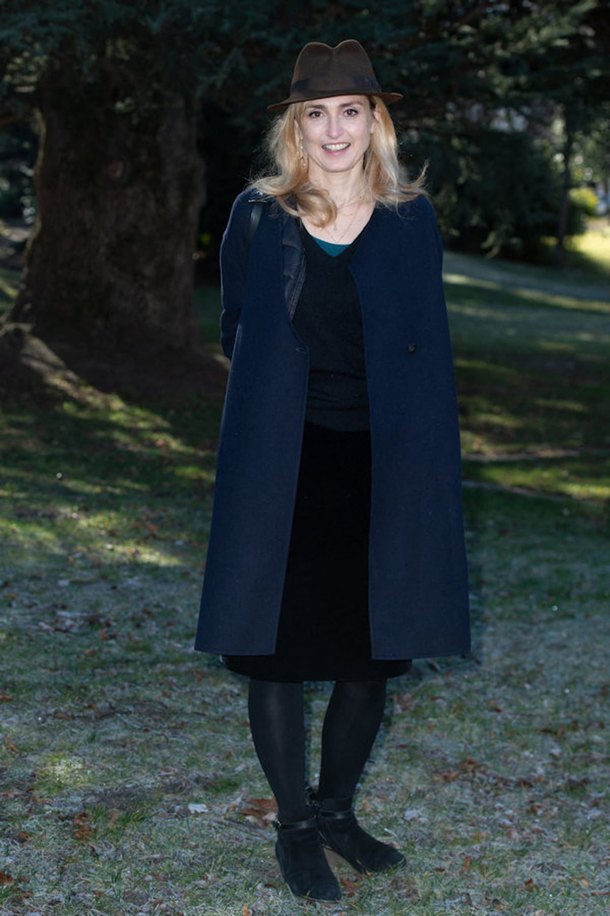 Julie Gayet en manteau marine et chapeau au Festival des créations télévisuelles de Luchon le 5 février 2020.