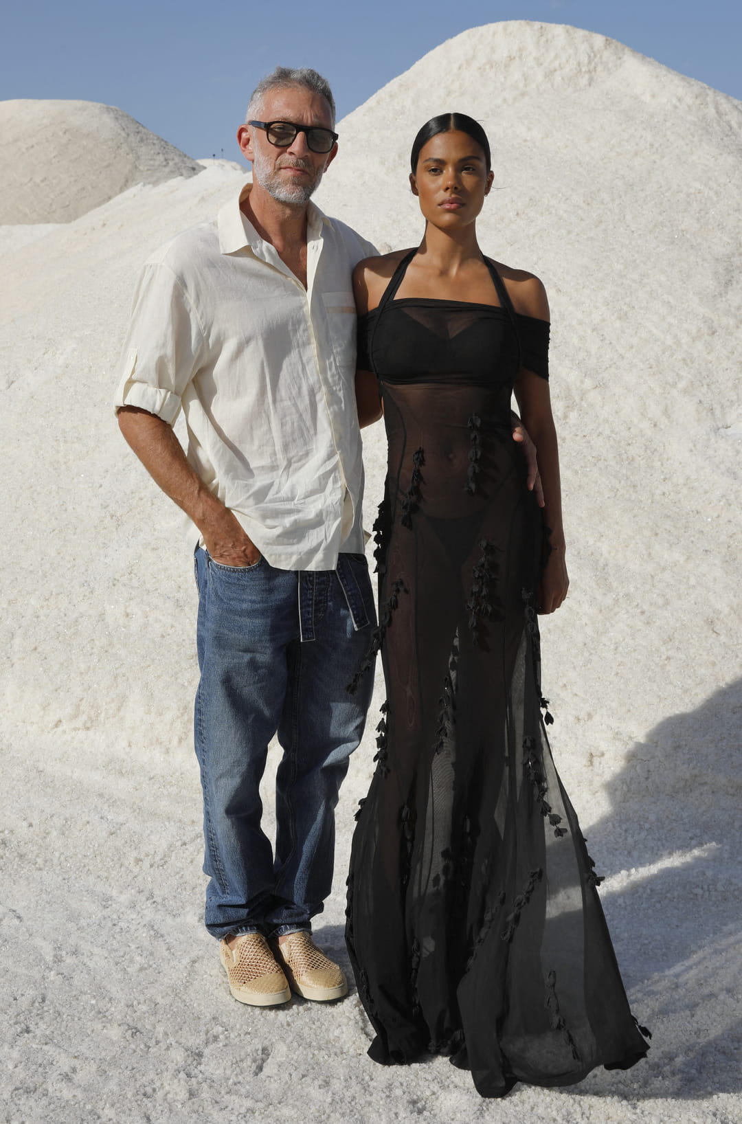 Victoria Beckham n'est pas la seule à avoir attiré l'attention. Vincent Cassel et Tina Kunakey, l'un des couples les plus stylés du moment, ont également fait le show ! Si l'acteur français avait préféré un look casual, composé d'une chemise à manches courtes blanc cassé, d'un jean style baggy et d'une paire de baskets slip on à crochets, la mannequin avait, elle, opté pour un look de soirée ultra glamour. La jeune femme était habillée d'une longue robe noire totalement transparente, dévoilant ainsi ses sous-vêtements. Une pièce vaporeuse ouverte dans le dos qu'elle avait accessoirisée d'une paire de sandales à talons. Plutôt audacieux.