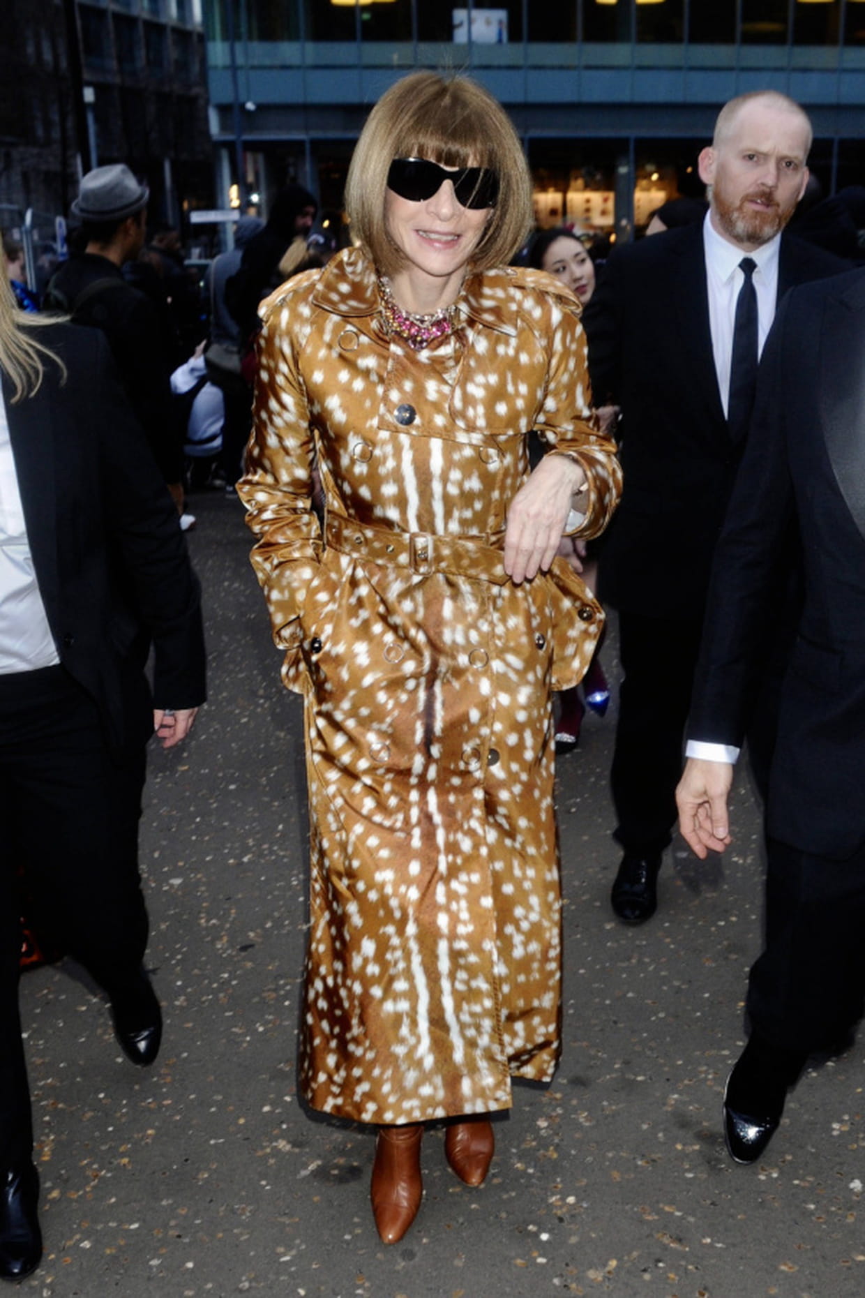 Anna Wintour et le trench Burberry au défilé Burberry automne-hiver 2019 à Londres le 17 février 2019.