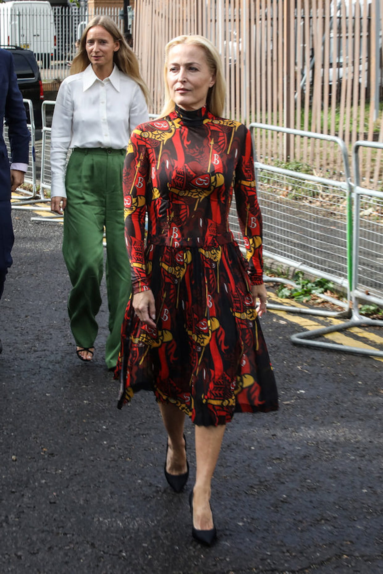 Gillian Anderson au défilé Burberry lors de la Fashion week printemps-été 2023 à Londres le 26 septembre 2022.