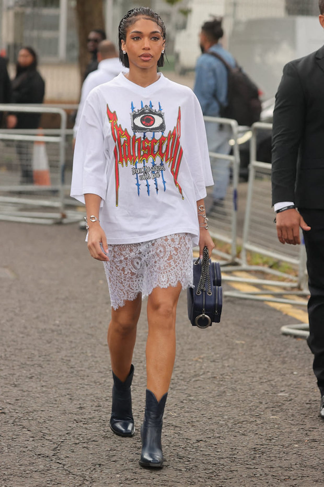 Lori Harvey au défilé Burberry lors de la Fashion week printemps-été 2023 à Londres le 26 septembre 2022.