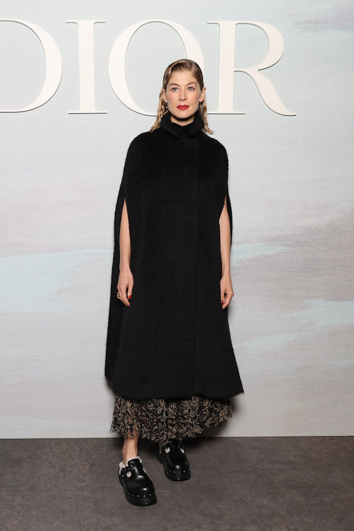 Rosamund Pike au défilé Dior lors de la Fashion week printemps-été 2023 à Paris le 27 septembre 2022.