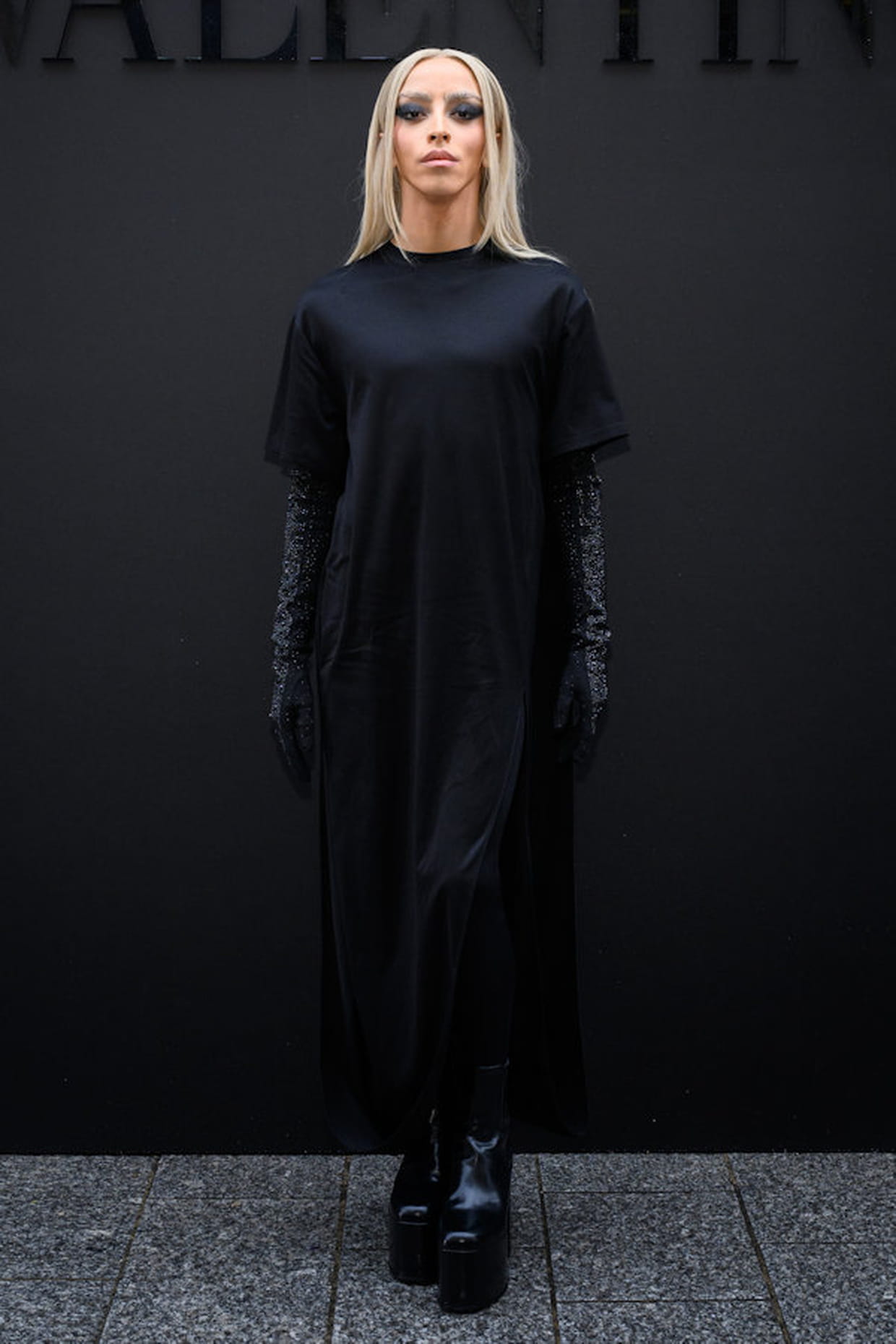 Bilal Hassani au défilé Valentino lors de la Fashion week printemps-été 2023 à Paris le 2 octobre 2022.