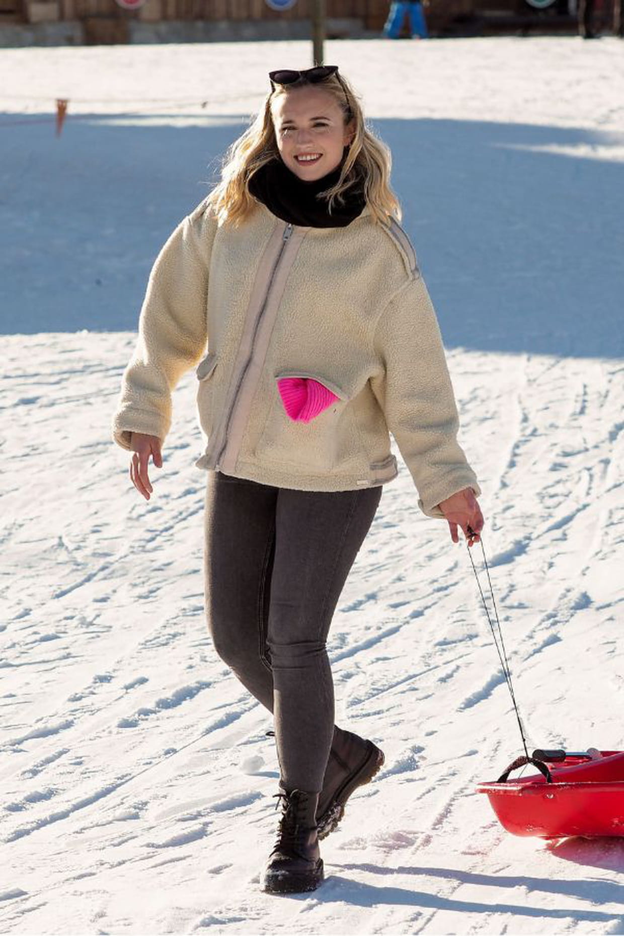 Chloé Jouannet en polaire chaude et denim gris à la 23ème édition du Festival International du Film de Comédie à l'Alpe d'Huez le 17 janvier 2020.