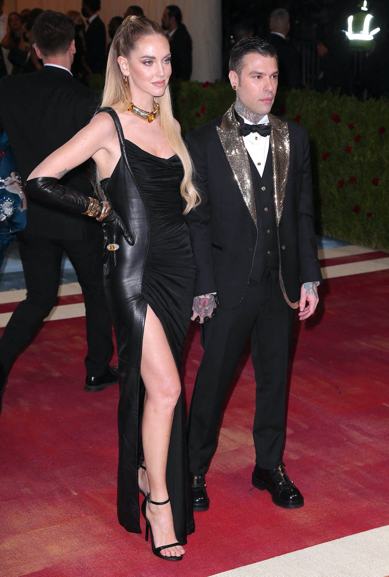 Chiara Ferragni et Fedez en robe fendue et smoking noir lors du Met Gala à New York le 2 mai 2022.