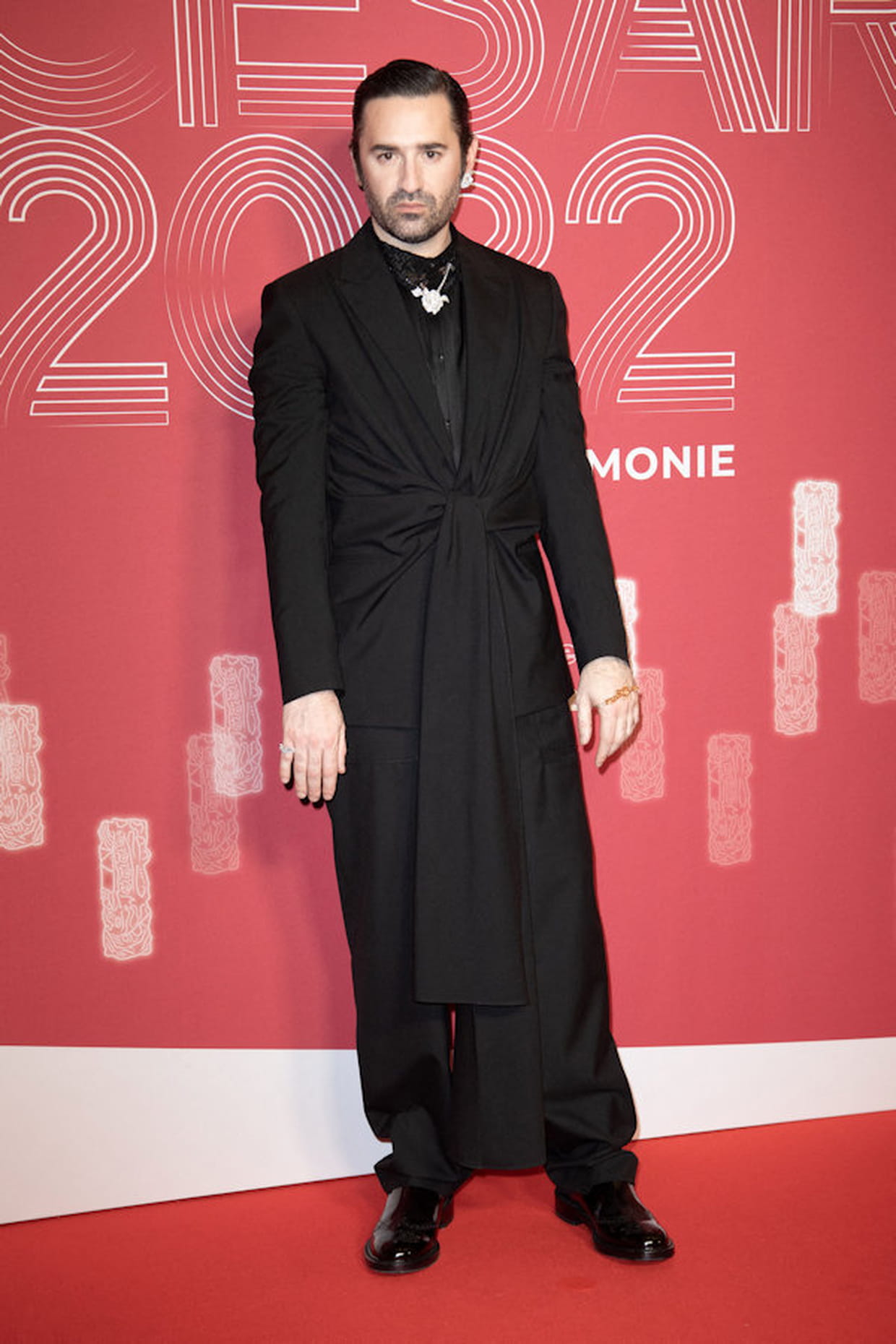 Nicolas Maury en tunique noire drapée à la 47ème cérémonie des Césars à Paris le 26 février 2022.