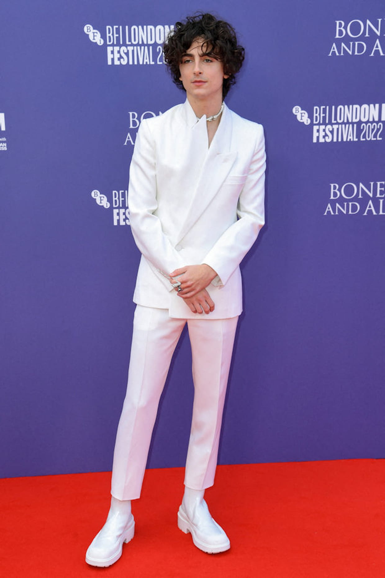Timothée Chalamet en costume blanc au festival du film de Londres le 8 octobre 2022.