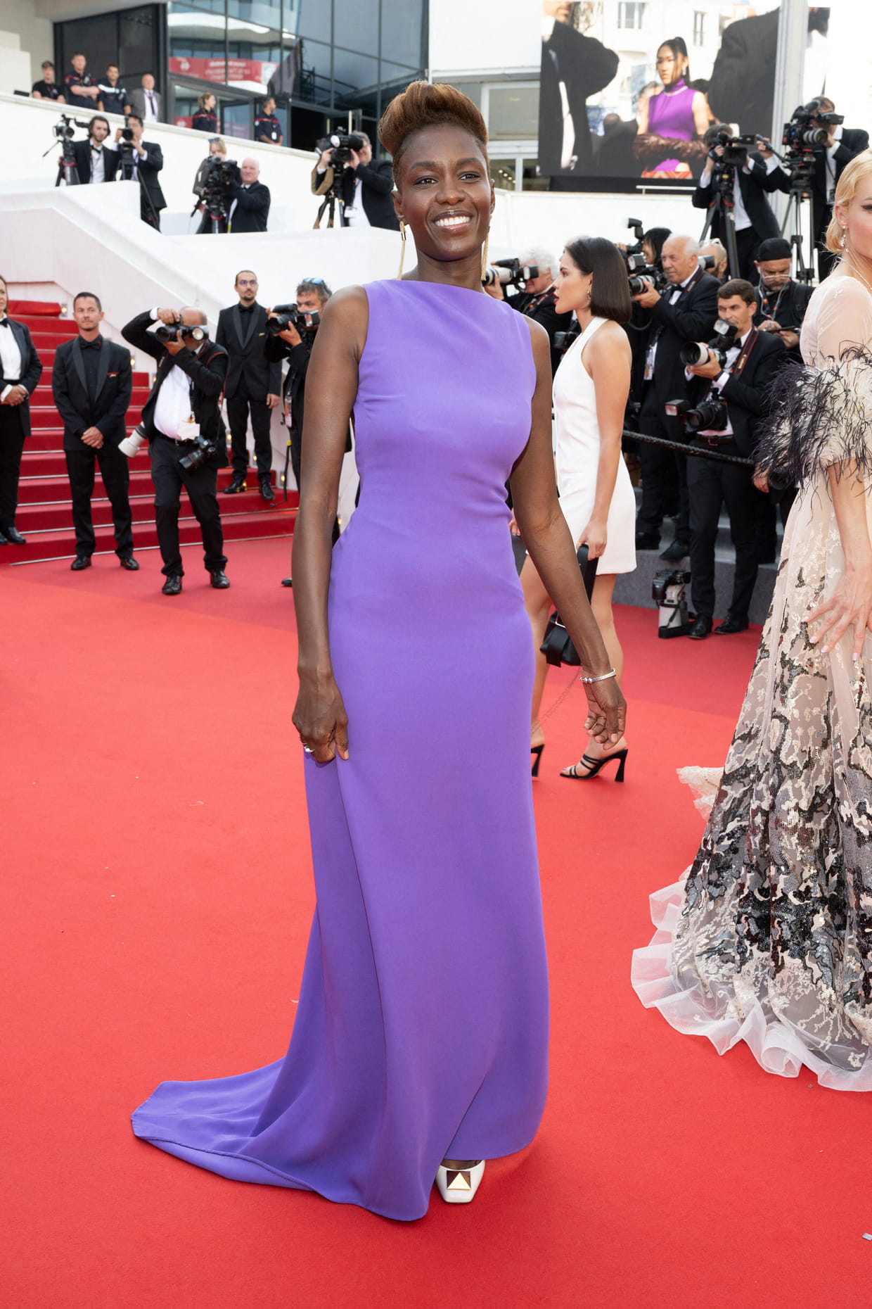 Rokhaya Diallo en robe violette lors du festival de Cannes le 21 mai 2022.