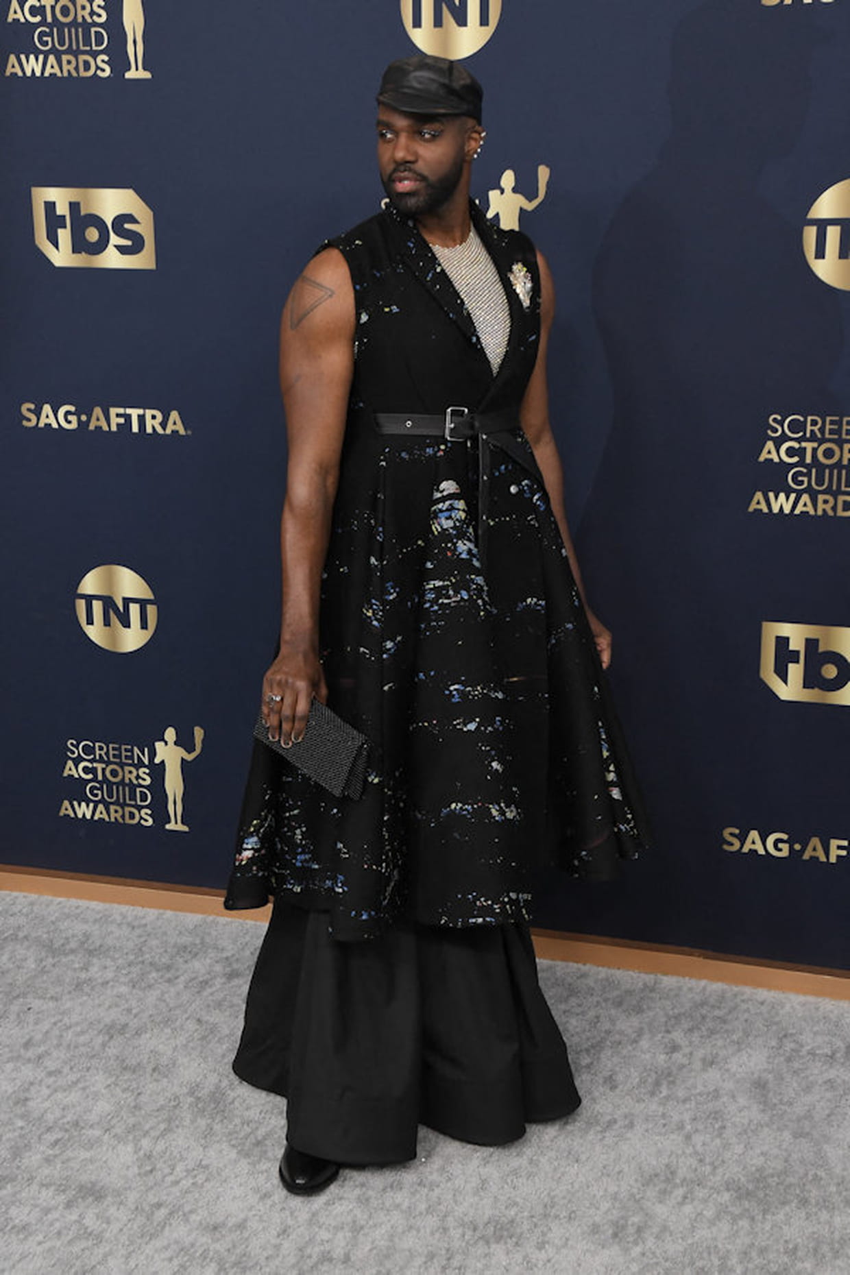 Carl Clemons-Hopkins en tunique noire à sequins lors de la 28ème cérémonie des SAG Awards à Los Angeles le 27 février 2022.
