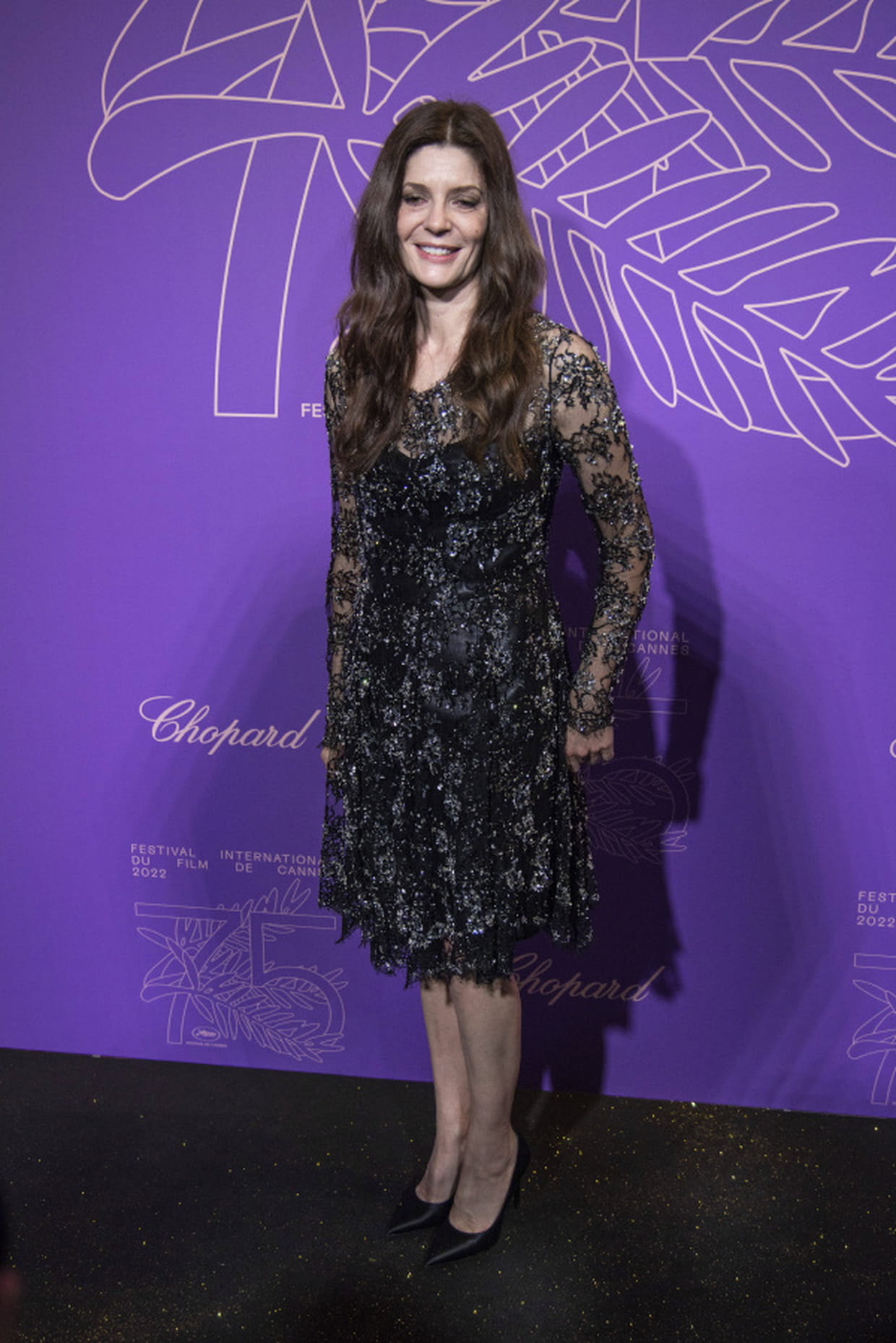 Chiara Mastroianni en robe transparente brodée au dîner d'anniversaire du festival de Cannes le 24 mai 2022.