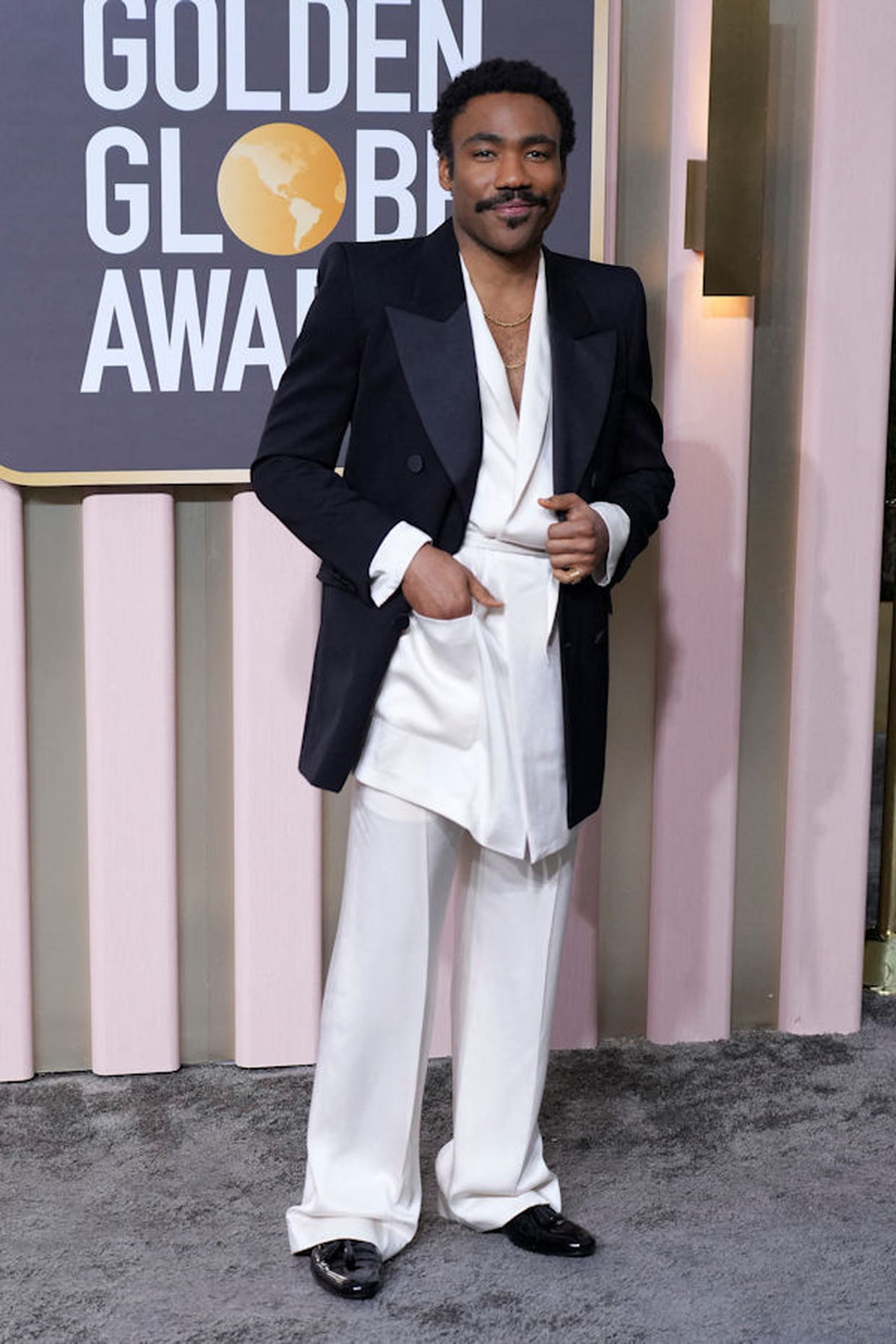 Donald Glover en ensemble Saint Laurent aux Golden Globes à Los Angeles le 10 janvier 2023.