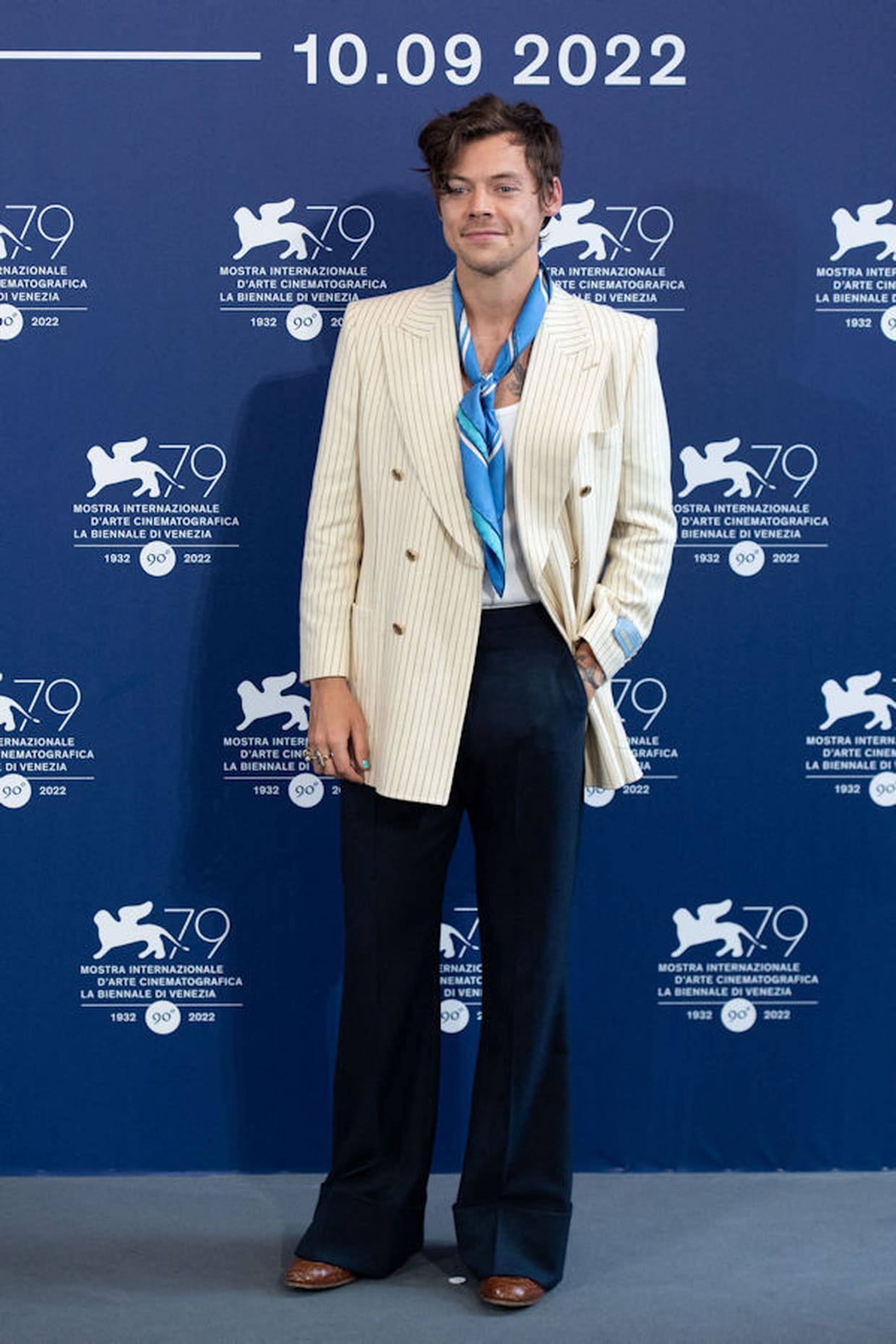 Harry Styles en ensemble Gucci à la Mostra de Venise le 5 septembre 2022.