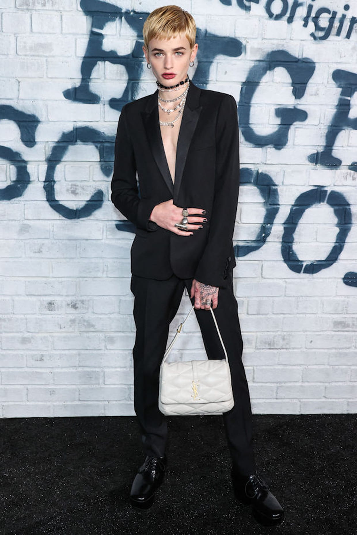Esther Rose McGregor en costume noir décolleté à la soirée High School d'Amazon à Los Angeles le 13 octobre 2022.