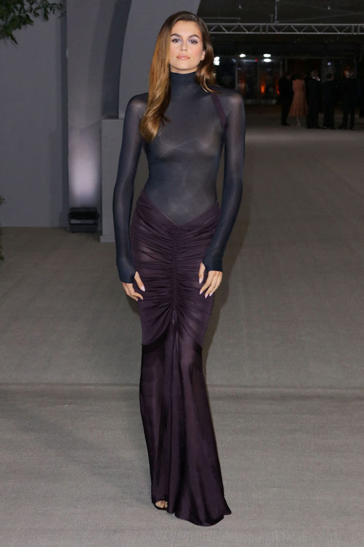 Kaia Gerber en robe longue Alaïa au gala de l'Academy Musuem of Motion Pictures à Los Angeles le 15 octobre 2022.