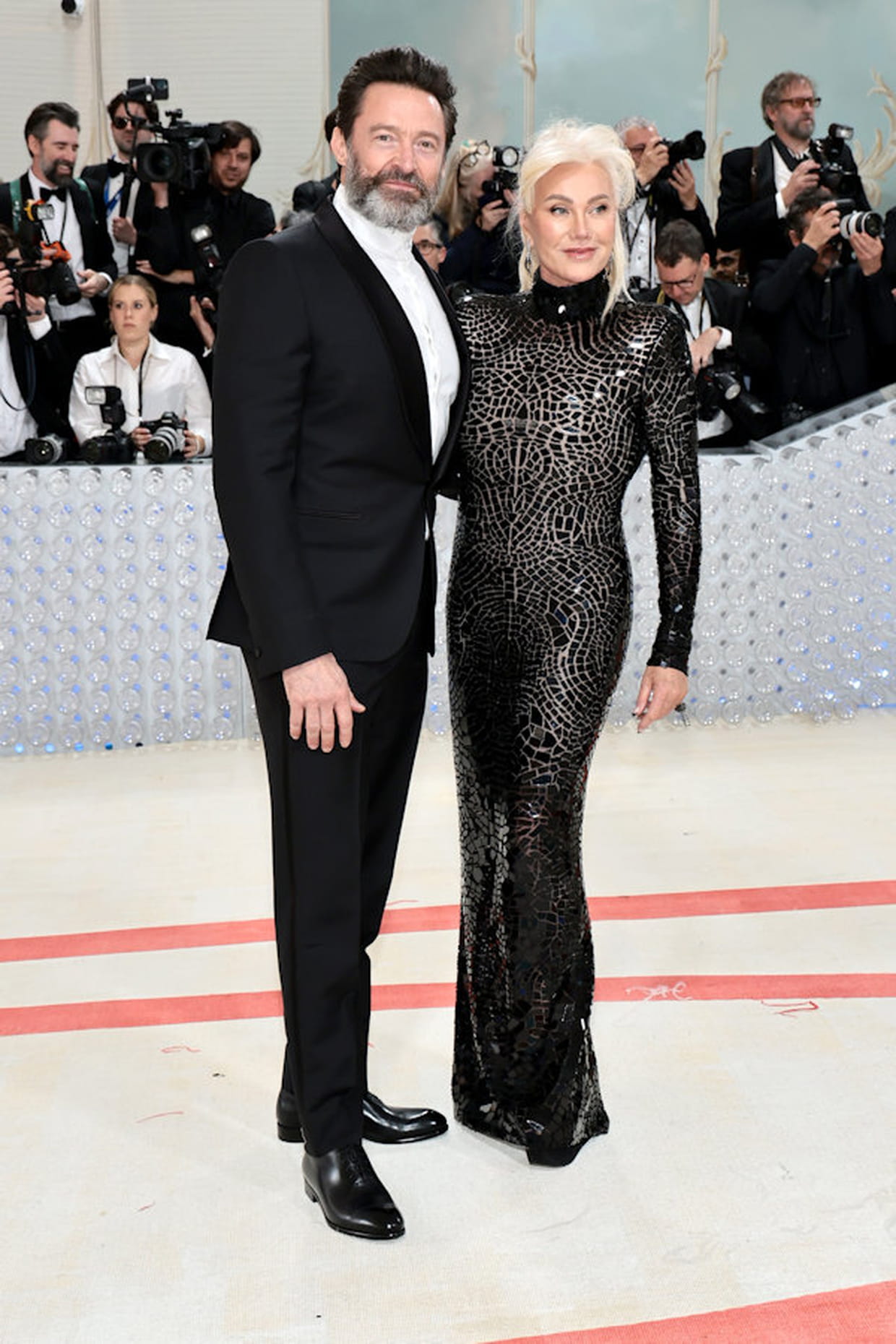Hugh Jackman en costume noir Zegna et Deborra-Lee Furness Ooze en robe pailletée Tom Ford vintage lors du Met Gala au Metropolitan Museum of Art de New York le 1er mai 2023.