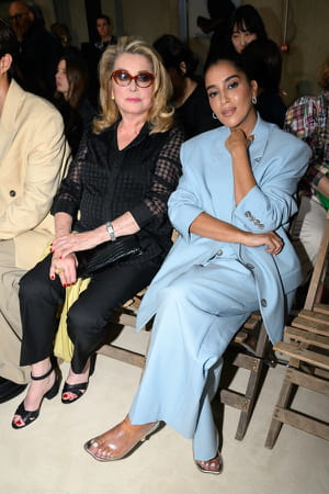 Un florilège de stars s'est présenté aux portes du défilé. La créatrice de contenus Lena Mahfouf, suivie par plus de 4 millions d'abonné-e-s sur Instagram, était l'un-e des privilégié-e-s qui a pu assister au spectacle. Sa tenue était composée d'une robe transparente, assortie à un ensemble de sous-vêtements et à un sac à main noir à chaîne argentée. Le premier rang comptait également les comédiennes françaises Catherine Deneuve, en total look noir et Leïla Bekhti, en total look bleu clair, assises côte à côte. Des stars internationales ont aussi fait le déplacement à Paris, notamment l'actrice et chanteuse américaine Halle Bailey, qui a récemment joué dans le live action La petite sirène de Disney et qui portait un ensemble de costume oversize gris.