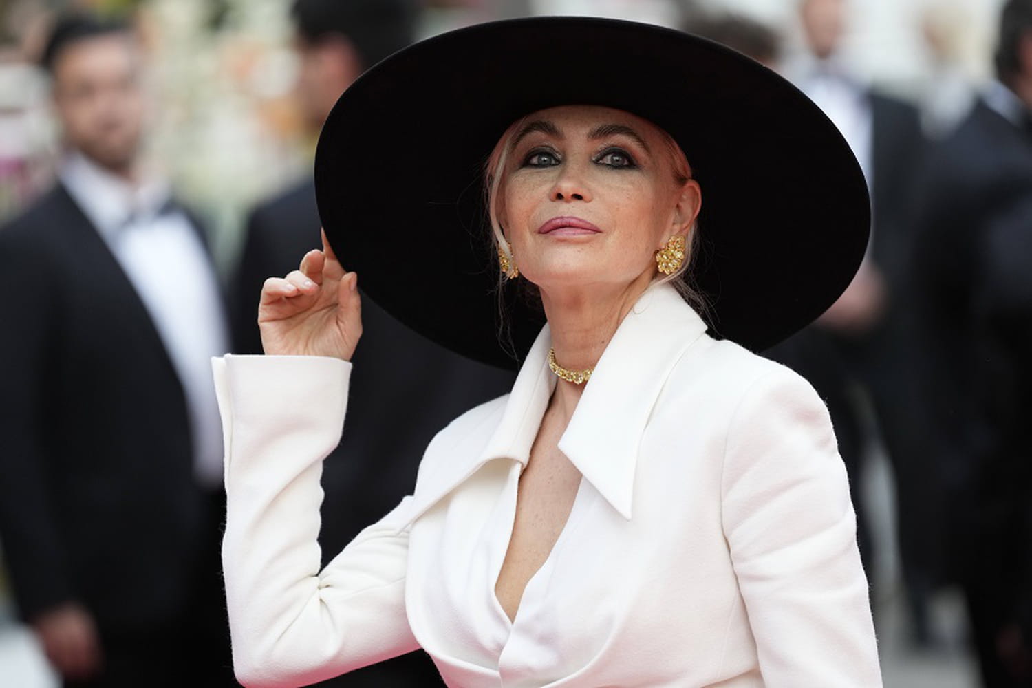Dans ce costume élégant, Emmanuelle Béart met à l'honneur la jeune griffe parisienne dont les modeuses raffolent