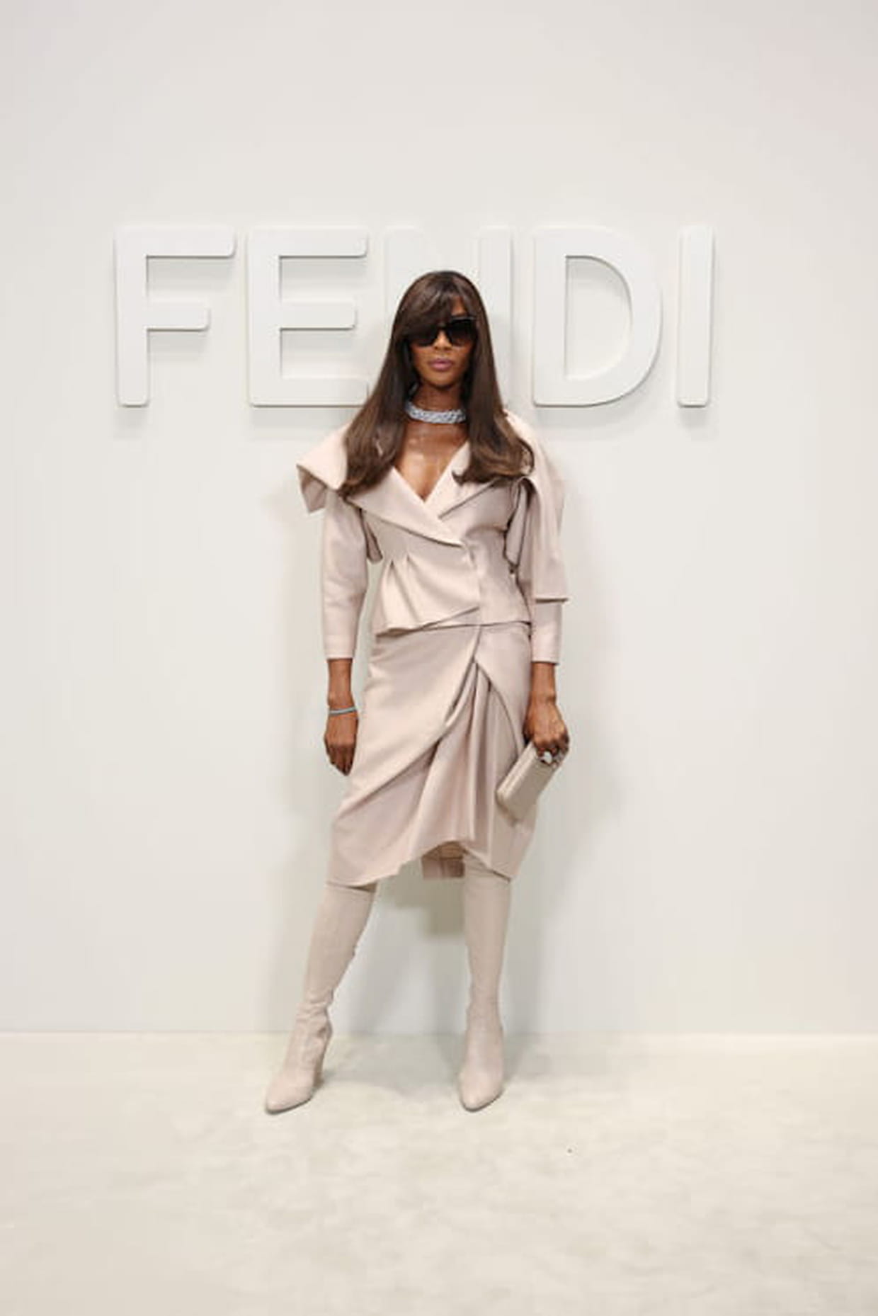 Naomi Campbell en ensemble crème au défilé Fendi printemps-été 2024
