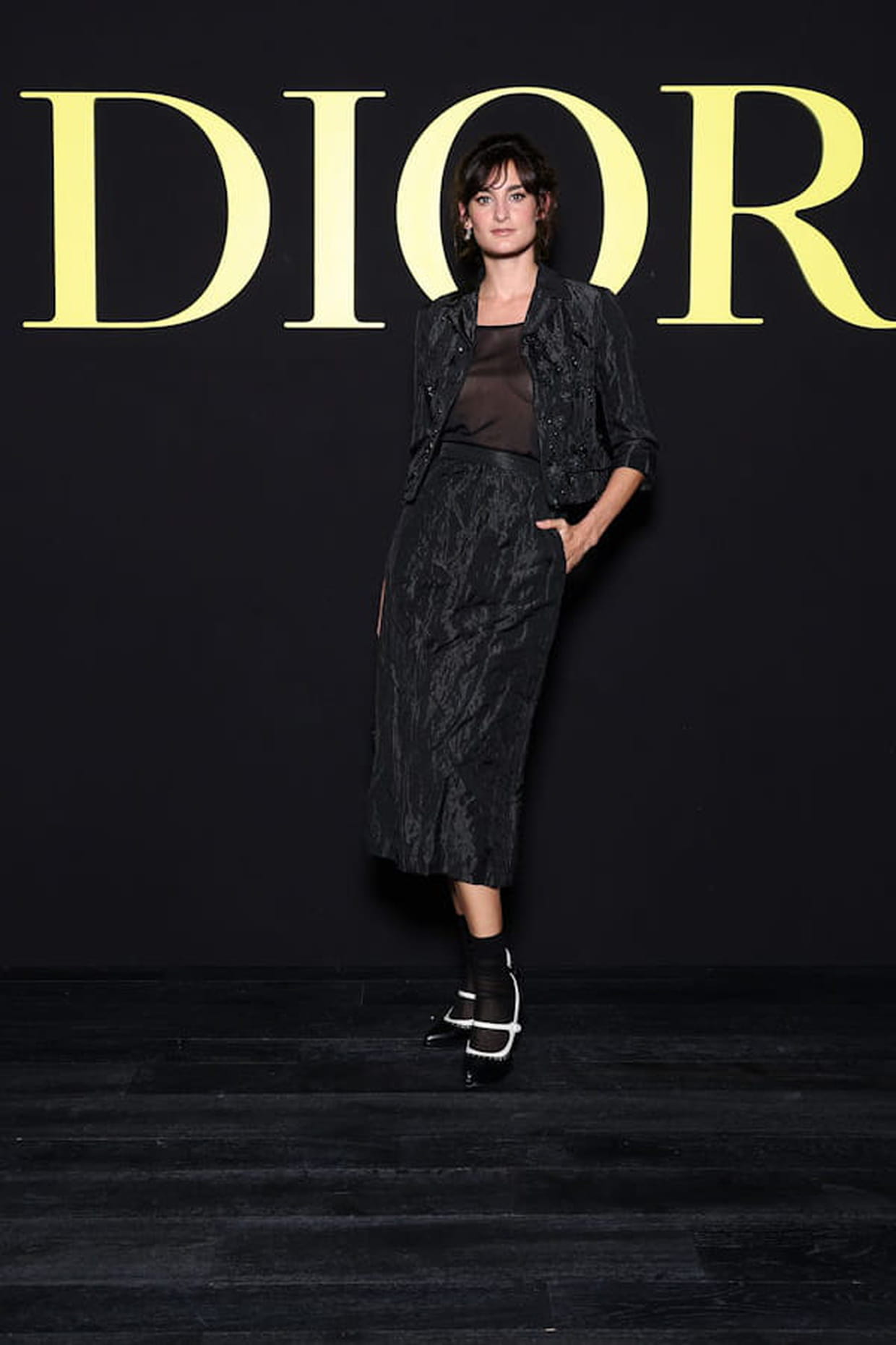 Nine d'Urso en robe et veste noires au défilé Dior printemps-été 2024 pendant la Fashion week à Paris le 26 septembre 2023.