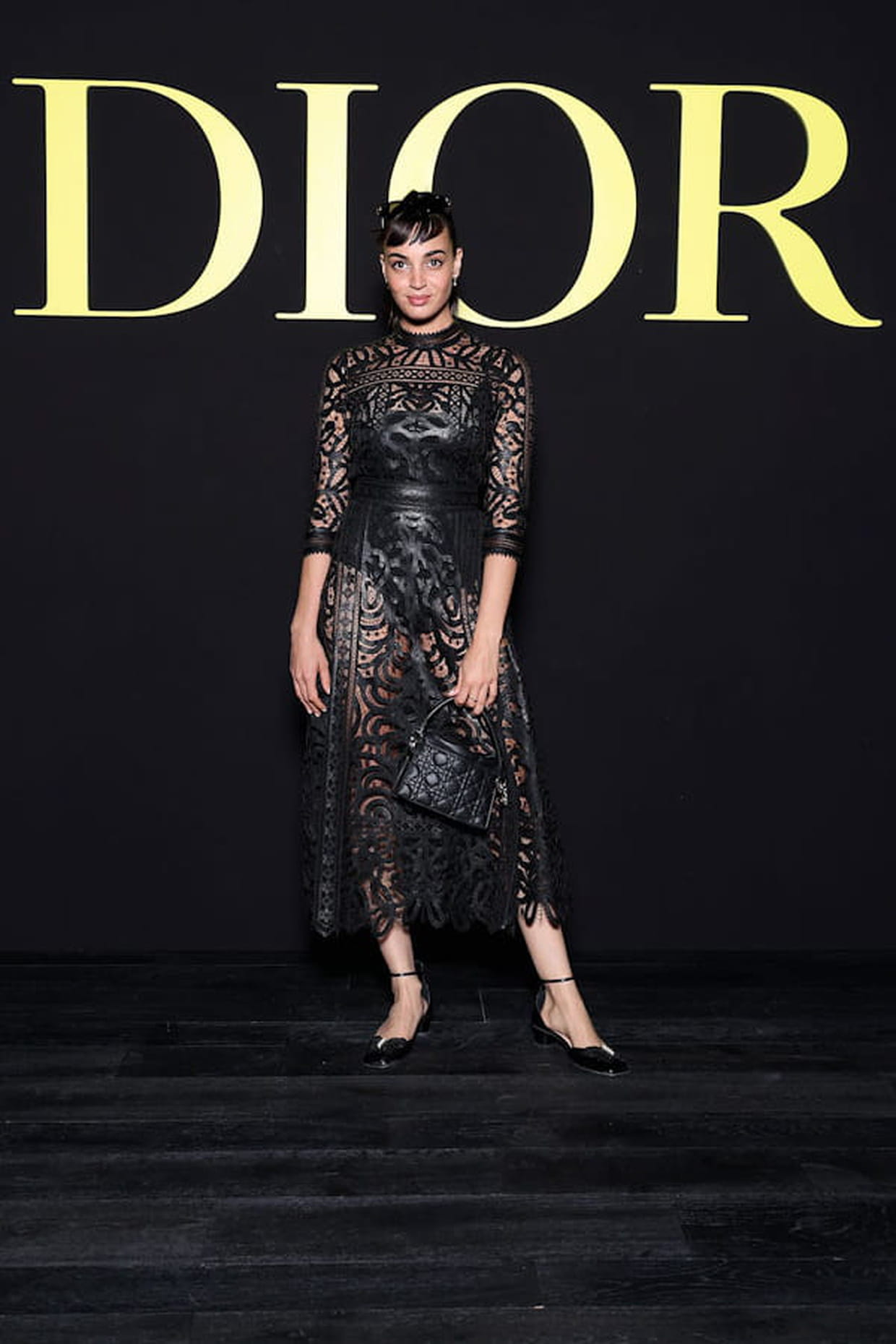 Souheila Yacoub en robe en dentelle noire au défilé Dior printemps-été 2024