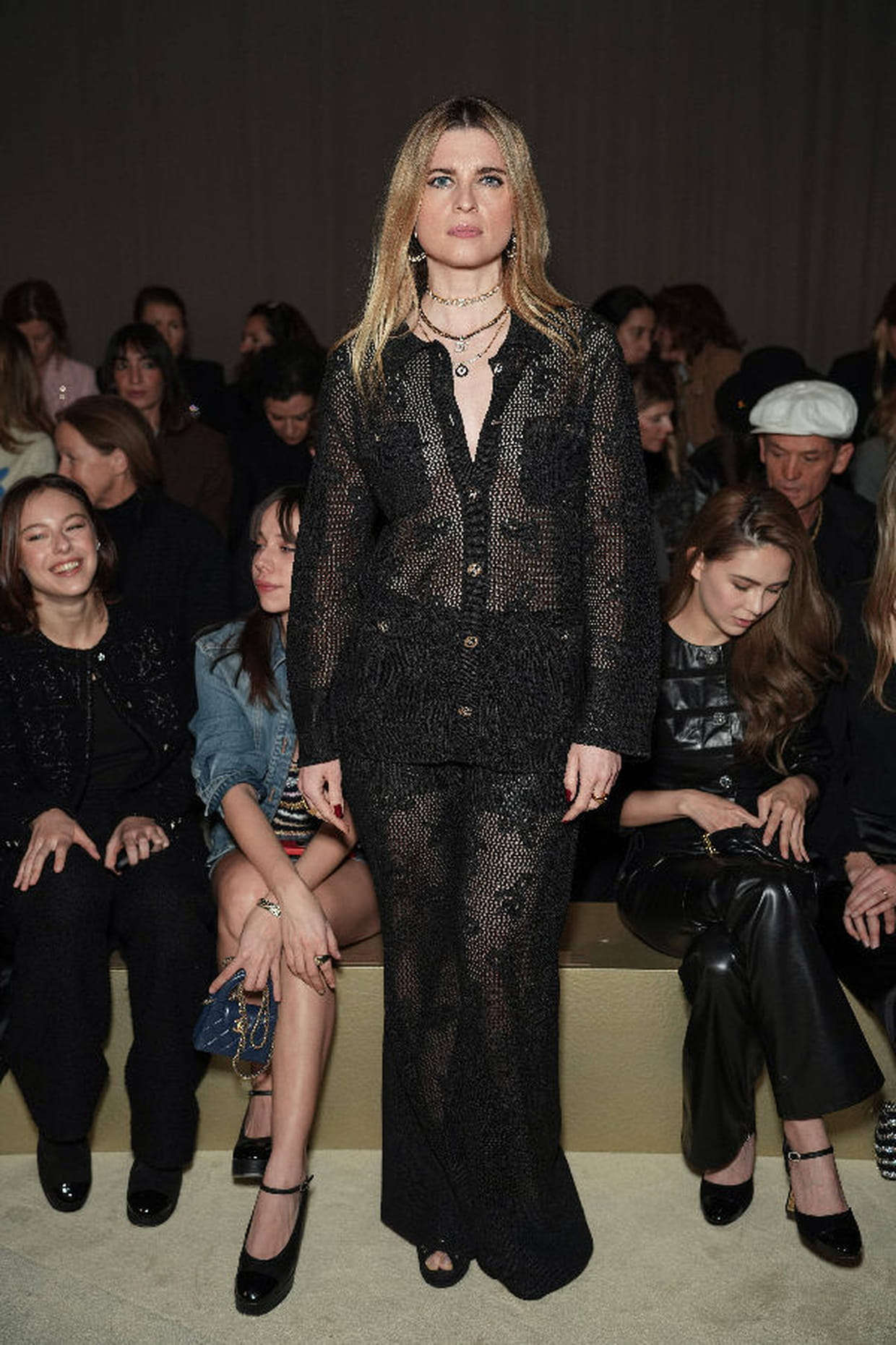 Cécile Cassel en ensemble noir ajouré au défilé Chanel haute couture printemps-été 2024