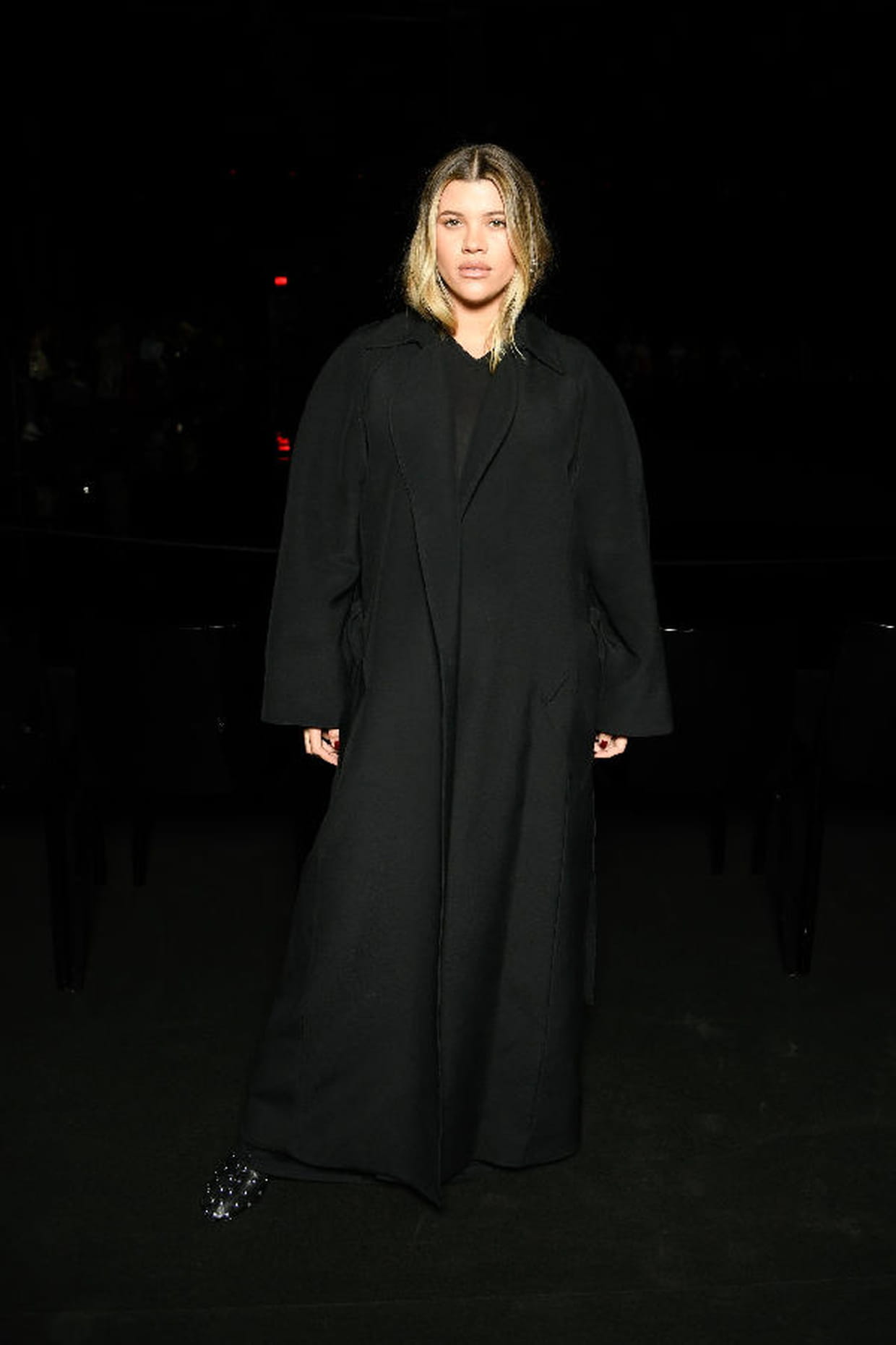 Sofia Richie en total look noir au défilé Khaite lors de la fashion week automne-hiver 2024-2025 à New York le 11 février 2024.