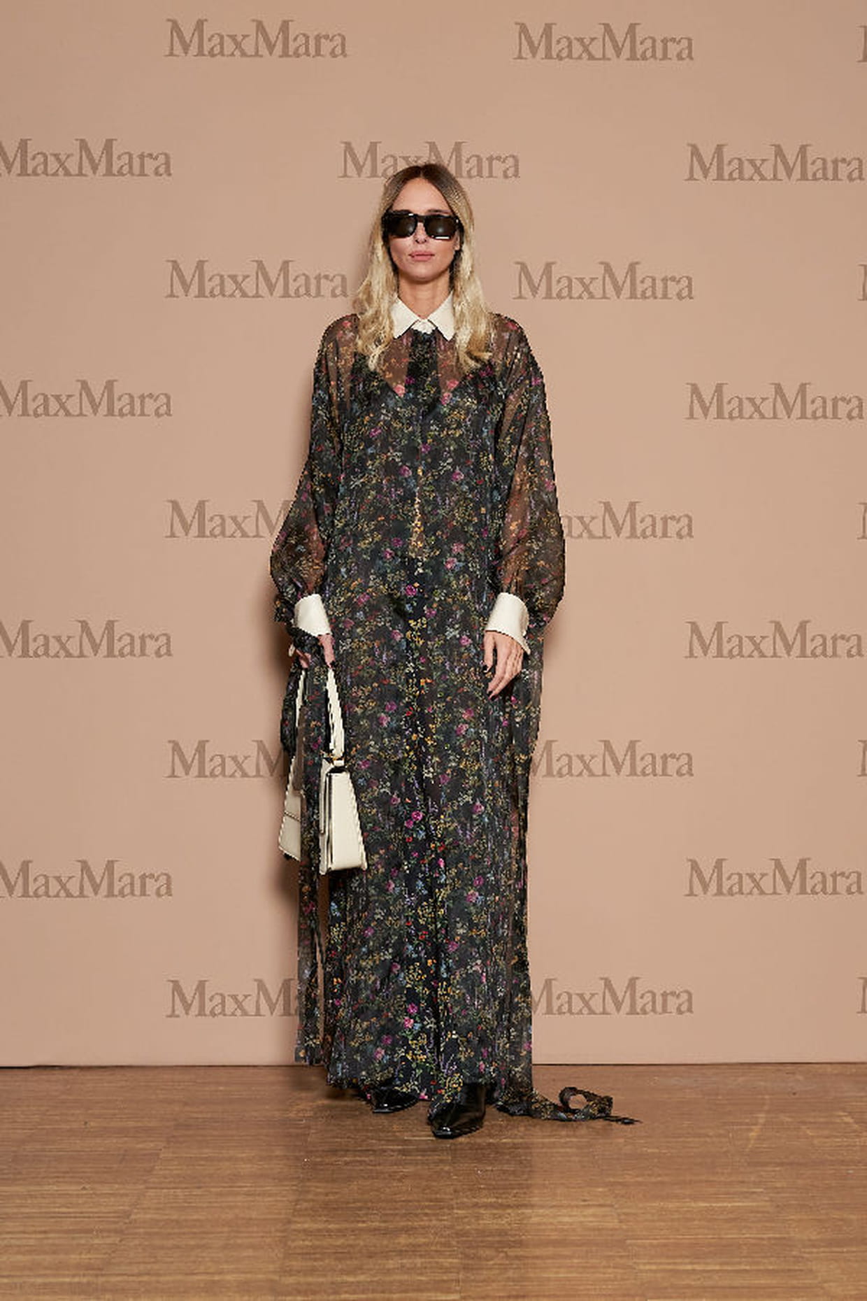 Candela Pelizza en robe fleurie transparente au défilé Max Mara lors de la fashion week automne-hiver 2024-2025 à Milan le 22 février 2024.