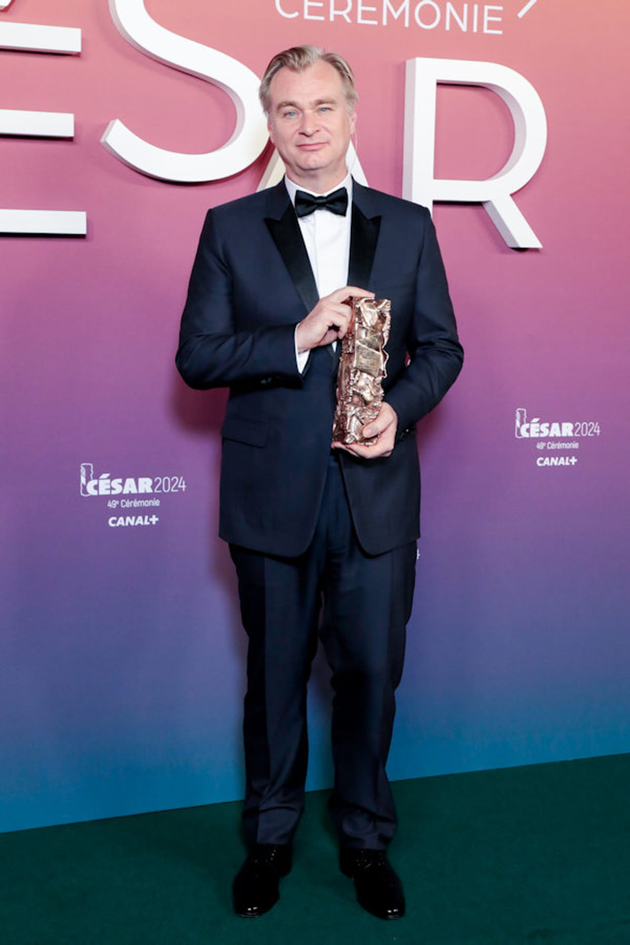 Christopher Nolan en smoking noir, chemise blanche et nœud papillon Dior à la 49ème cérémonie des César à Paris le 23 février 2024.