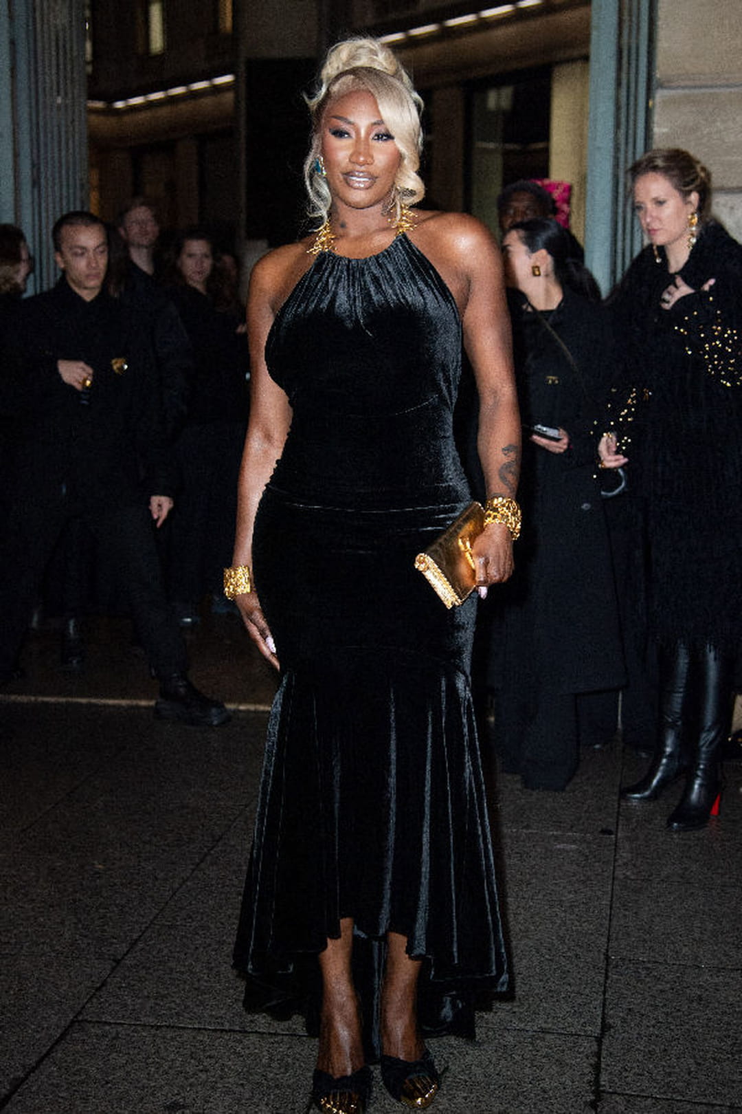 D'autres personnalités françaises ont étonné grâce à leurs tenues ce soir-là. Aya Nakamura est par exemple apparue dans une longue robe du soir dos nu en velours noir. Le col de la pièce vendue 8 900 euros était orné d'innombrables colombes dorées, un animal chéri par la fondatrice de la maison, Elsa Schiaparelli. Avec ses bijoux et ses escarpins dorés, l'artiste a prouvé qu'elle maîtrise parfaitement les codes de la mode. Après une absence de quelques mois, la chanteuse Clara Luciani a, elle aussi, fait le déplacement pour découvrir les dernières créations estampillées Schiaparelli. Elle avait jeté son dévolu sur un long manteau noir à col châle et à manches arrondies, inspirées des ailes d'une colombe. Orné d'une rangée de boutons dorés, ce vêtement d'exception est vendu 9 500 euros.
