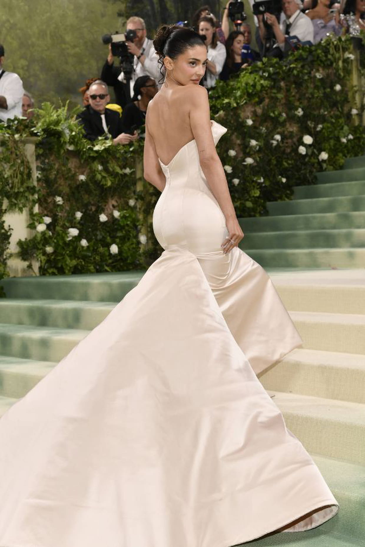 En fourreau blanc à traîne, Kylie Jenner pourrait monter les marches de son mariage