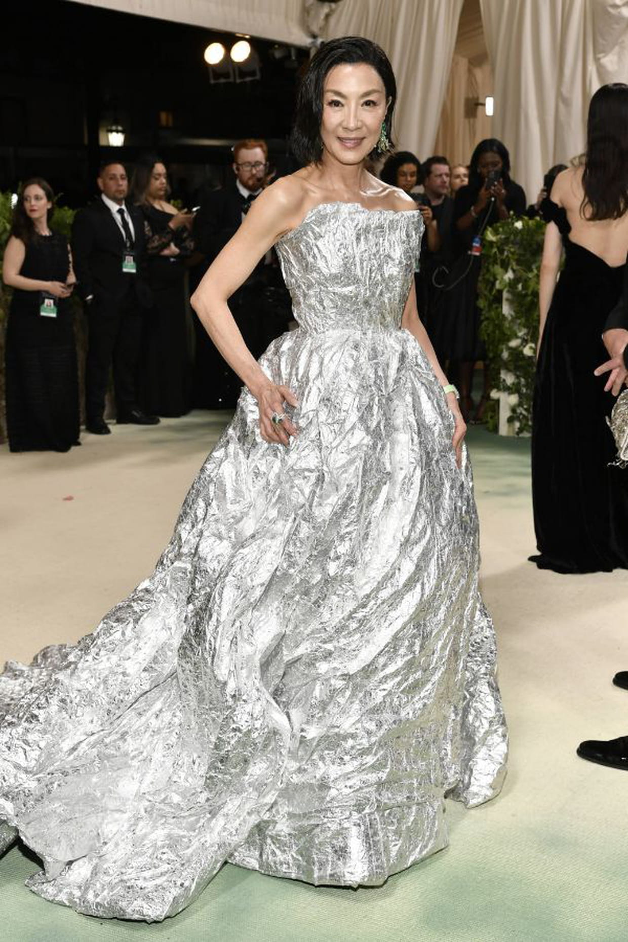Michelle Yeoh semble vêtue d'un immense rouleau de papier alu