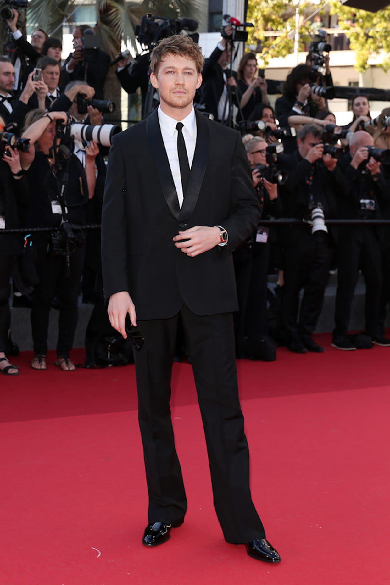 Joe Alwyn en smoking noir Celine et montre Piaget