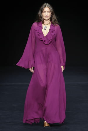 La maison italienne met en valeur la robe, vue sur le podium dans toute sa splendeur. Courte, mi-longue ou longue, cette pièce est présentée dans de magnifiques tissus de dentelle et de viscose révélant des couleurs vives. Et c'est dans l'une d'entre elles que Laetitia Casta a défilé !