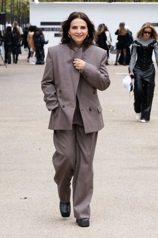 Le 30 septembre dernier avait lieu la présentation de la collection printemps-été 2025 de Stella McCartney à Paris. L'occasion d'apercevoir Juliette Binoche lovée dans une magnifique tenue monochrome. Pour cette sortie placée sous le signe de la mode, l'actrice avait tout misé sur un ensemble de costume dans un coloris brun délicat. Dessous se cachait une chemise satinée dans les mêmes tons.
