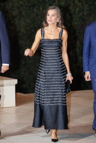 Le 15 octobre 2024, le roi Felipe VI et la reine Letizia étaient attendus à Barcelone afin de présider la cérémonie de remise du prix littéraire Planeta 2024. À cette occasion, Letizia d'Espagne avait jeté son dévolu sur un look scintillant, à la fois par sa robe noire recouverte de strass ainsi que par ses bijoux. Elle portait des boucles d'oreilles en diamant appartenant à la famille royale et un impressionnant bracelet Cartier. Ainsi vêtue et parée, elle était sublime !